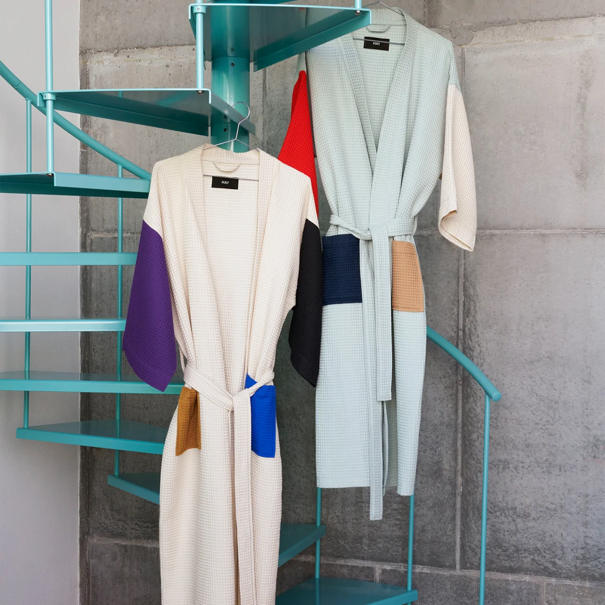 Le Waffle peignoir multicolor de la maison danoise HAY séduit par sa structure gaufrée tridimensionnelle. Il est fabriqué en coton extrêmement doux et absorbant et convient à tout le monde grâce à sa coupe confortable. La ceinture à nouer permet d'ajuster le peignoir. Deux poches offrent un espace optimal pour toutes sortes de petites choses. Waffle est disponible dans la boutique en différentes couleurs à la mode.