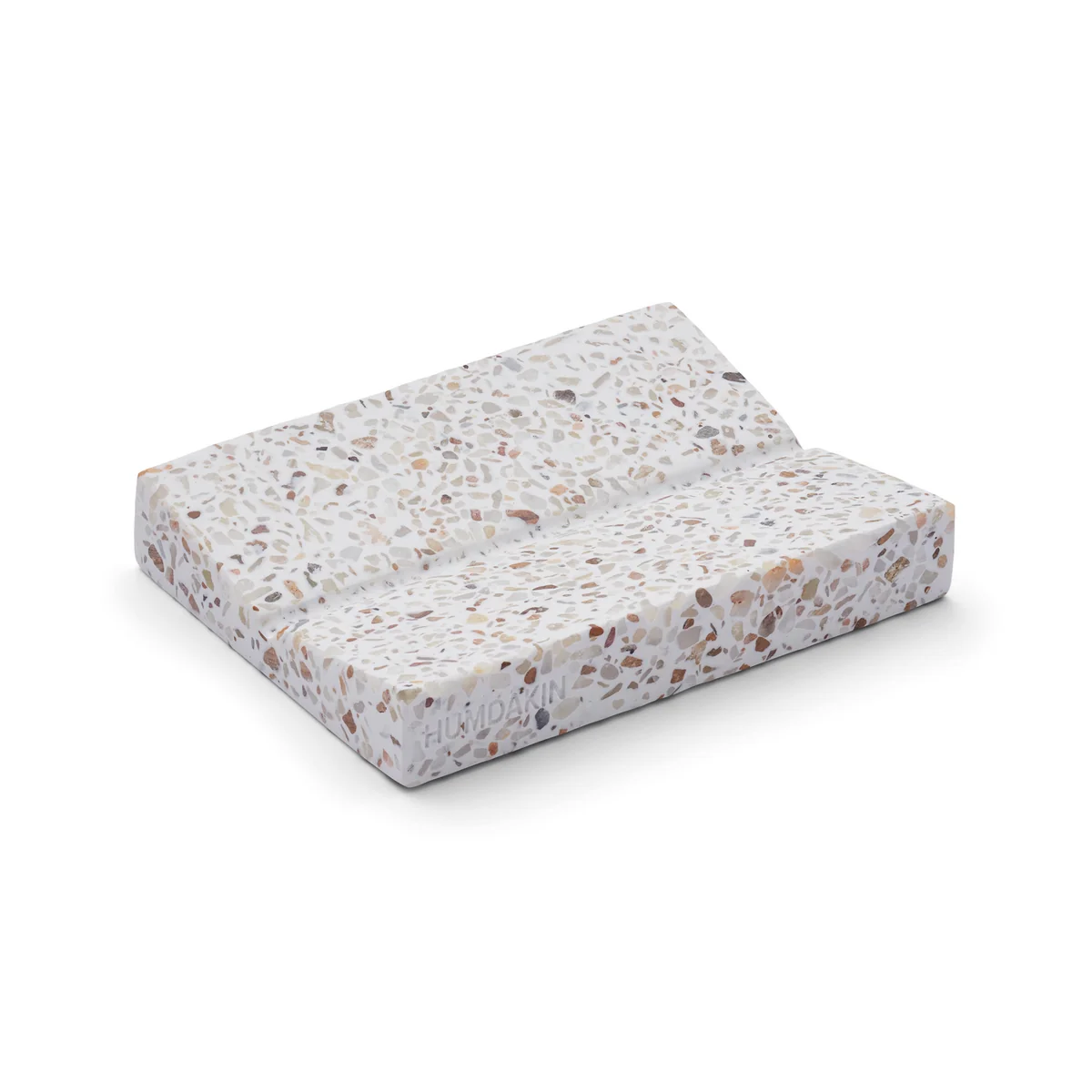 Ce porte-savon en plastique de haute qualité Terrazzo apporte un vent de fraîcheur dans la salle de bains. Grâce à son aspect robuste et résistant, le porte-savon développe une atmosphère moderne et sophistiquée et donne à ce matériau, habituellement plutôt connu pour ses sols, un nouvel éclat époustouflant. La coupe peut accueillir une savonnette standard et mesure 13 x 10 cm.