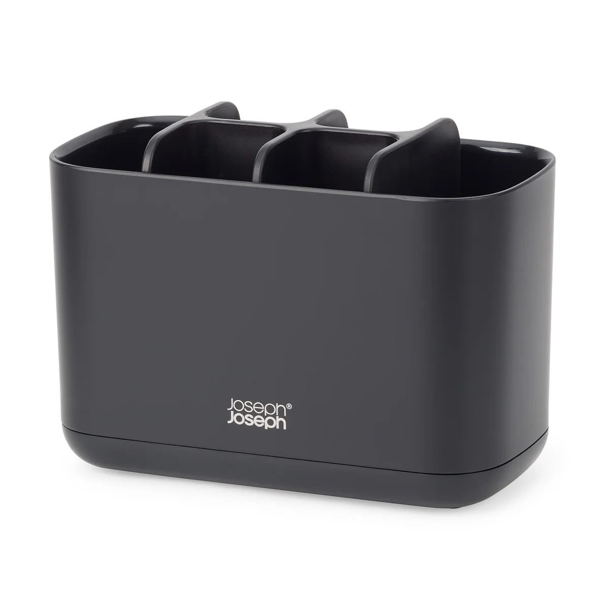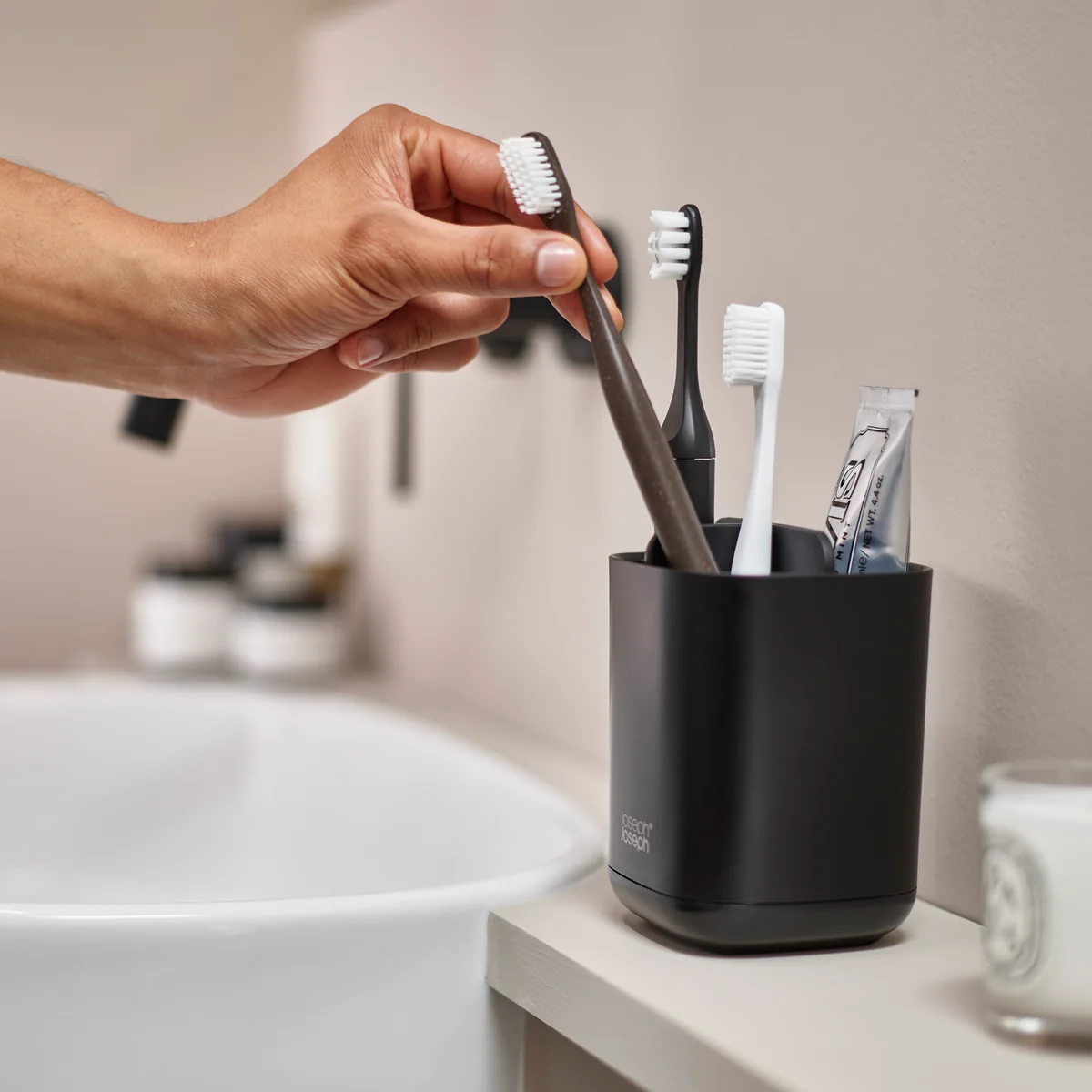 Le EasyStore Porte-brosse à dents de Joseph Joseph est un excellent complément pour la salle de bains et offre de la place pour les produits d'hygiène dentaire tels que la brosse à dents, le dentifrice ou le fil dentaire. Grâce aux différents compartiments, le récipient peut être facilement partagé entre les membres de la famille ou les colocataires, afin que chacun ait son propre espace.