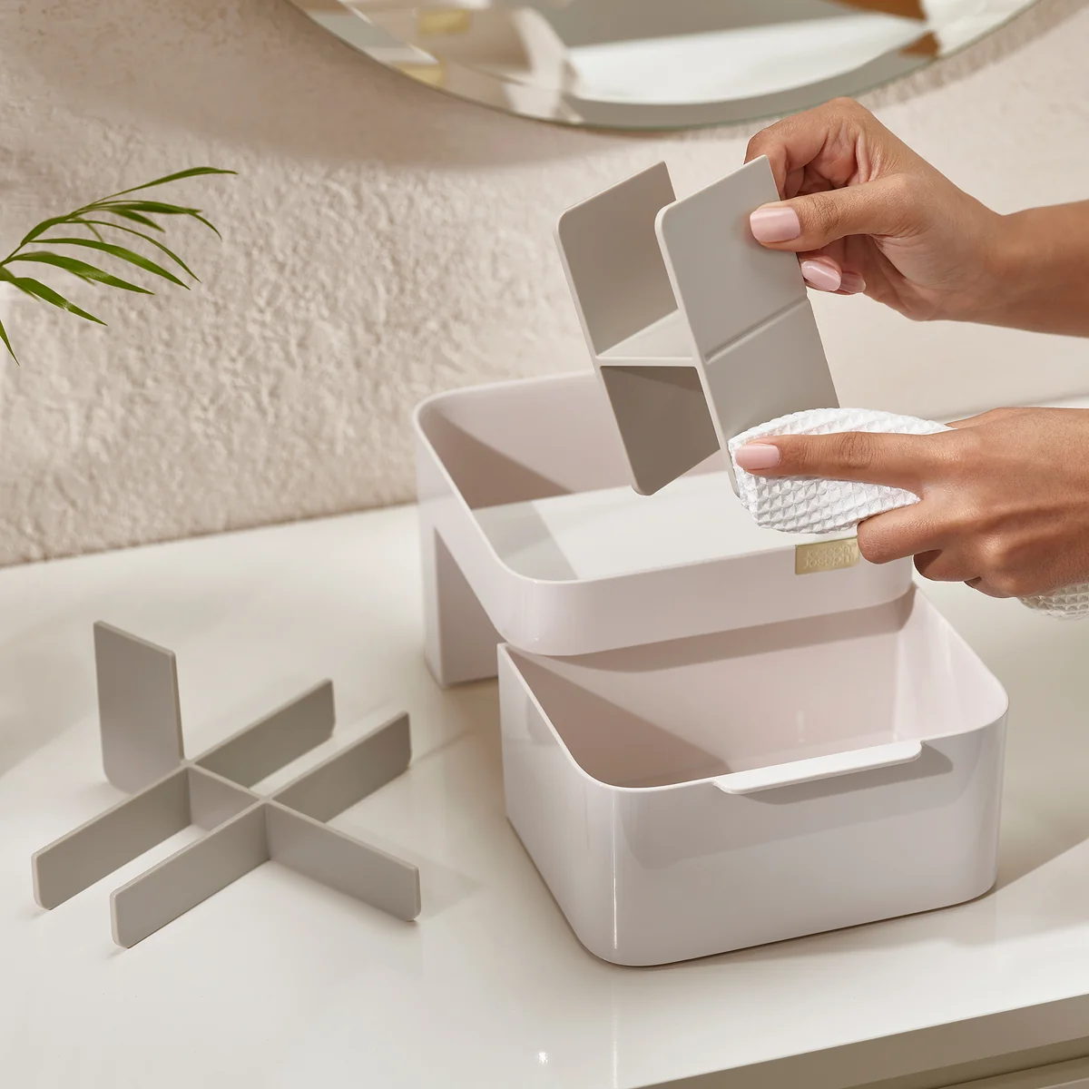 Avec le Make Me up de Joseph Joseph , votre rituel de beauté quotidien devient une expérience véritablement organisée et élégante. L'organisateur cosmétique à tiroir offre des compartiments profonds, parfaits pour les pinceaux, le mascara et les crayons eye-liner, ainsi que des compartiments peu profonds pour les petits trésors comme les rouges à lèvres, les fards à joues et les ombres à paupières. Le tiroir lui-même est équipé d'une fermeture magnétique qui permet de ranger en toute sécurité les cotons-tiges, les bâtonnets d'ouate et les éponges à maquillage. L'emblème chromé ajoute une touche d'élégance à cet organiseur et, cerise sur le gâteau, il se démonte facilement pour être nettoyé.