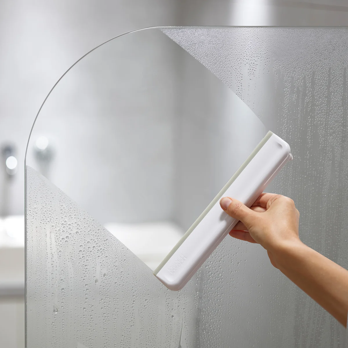 La minceur EasyStore La raclette de douche Joseph Joseph est une alternative élégante aux raclettes de salle de bains conventionnelles, autrement grandes et difficiles à ranger. Il est de conception compacte et ne nécessite pas de poignée. Sa lame de silicone flexible élimine en un rien de temps l'eau des surfaces lisses telles que les parois de douche, les miroirs et les fenêtres. Grâce à un petit crochet, le EasyStore Il suffit d'accrocher la raclette de douche sur le bord de la paroi de la douche et elle sera rangée discrètement.