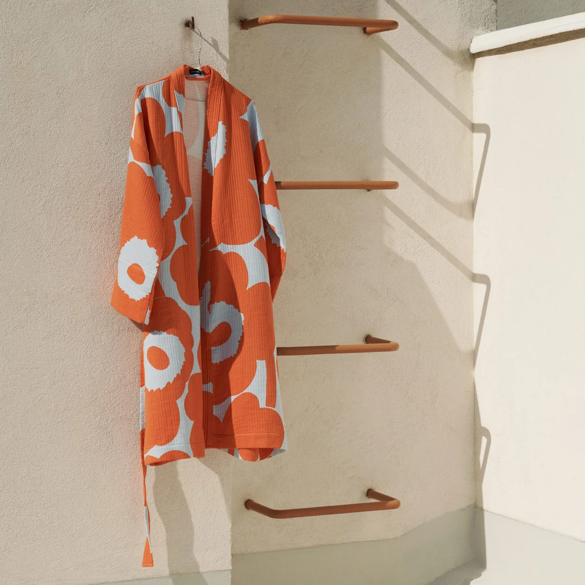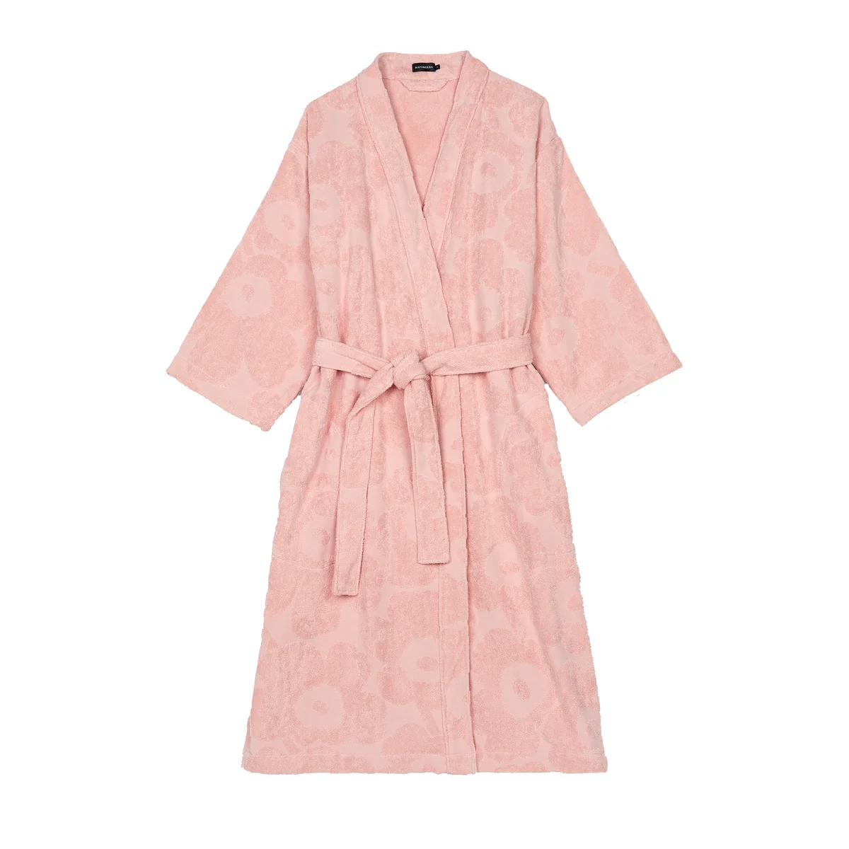 Avec son toucher doux et velouté, le peignoir Unikko de la maison finlandaise Marimekko est indispensable pour les moments de spa à la maison ! Il est fabriqué en éponge de coton bio et est orné du motif Pieni Unikko. Le peignoir dispose de grandes poches sur le devant et d'une ceinture - si nécessaire - amovible.
