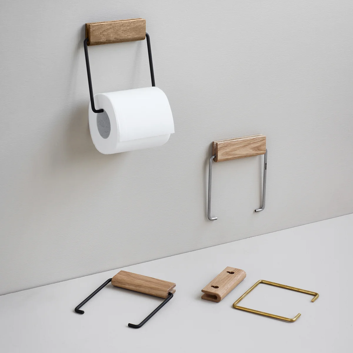 Le support de papier toilette de Moebe se présente sous un aspect moderne qui attire l'attention. L'association de deux matériaux de nature différente crée une esthétique contrastée qui apporte de beaux détails dans la salle de bains. Le support en bois peut être facilement fixé au mur, tandis que le fil métallique soutient les rouleaux de papier toilette de manière souveraine. Les deux composants confèrent au support un aspect élégant qui peut être combiné de multiples façons.