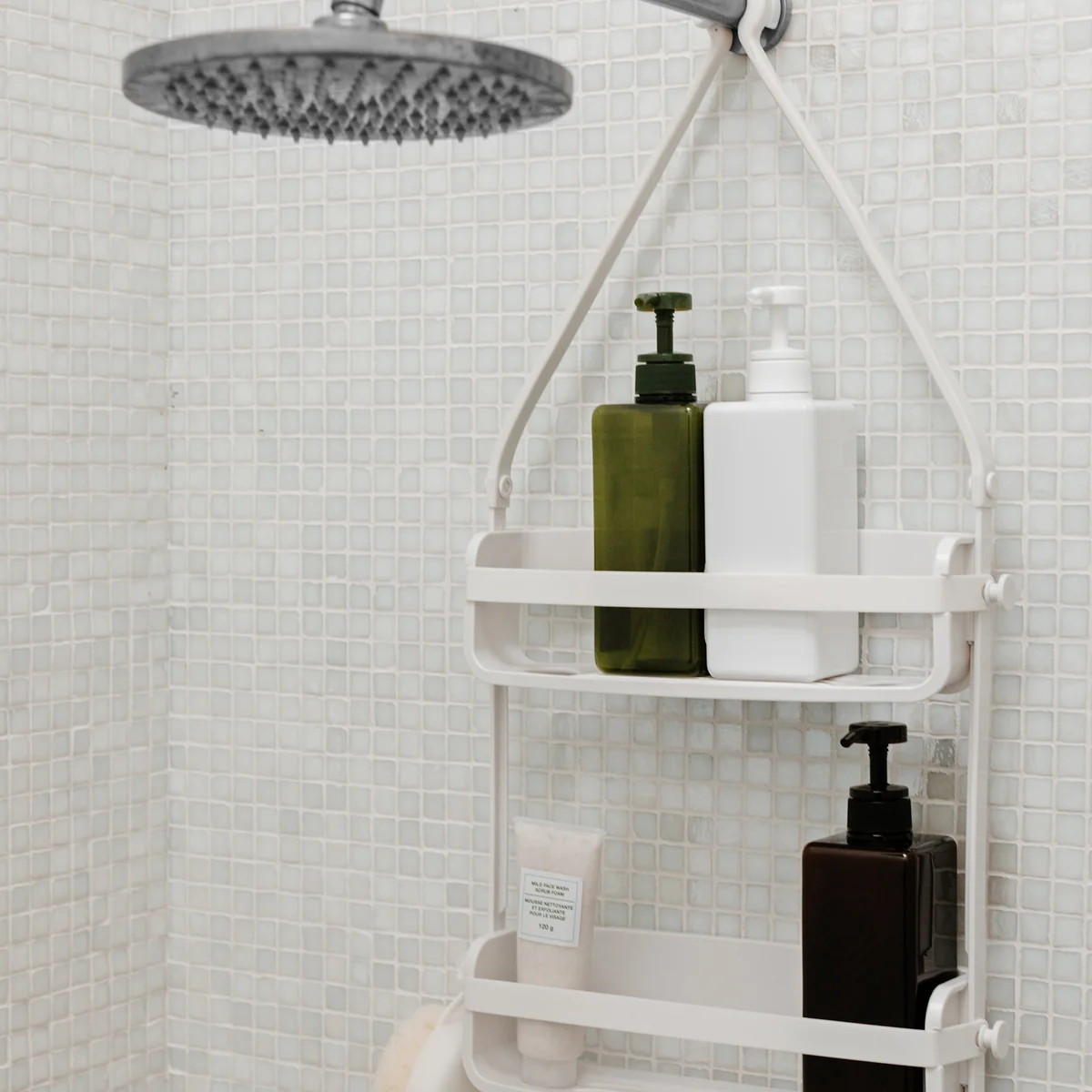 Le Flex de douche de Umbra est un caddy très fonctionnel pour la douche. Flex Il a été conçu pour prendre le moins de place possible dans la douche tout en permettant de ranger des bouteilles de grande taille. La tablette de douche se compose d'un cadre en plastique rigide et est équipée de bandes de silicone flexibles qui offrent une multitude de possibilités de rangement. La tablette est également dotée d'étagères en plastique extra larges qui peuvent accueillir du shampooing, de l'après-shampooing et des produits de soins corporels, tandis que les crochets sont parfaits pour les éponges et les lames de rasoir.