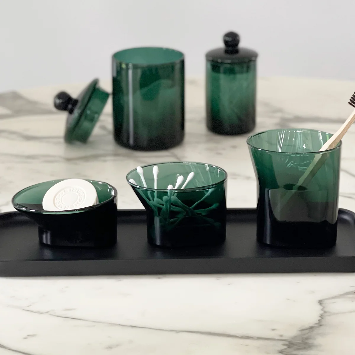 Les accessoires de salle de bain Cala de XLBoom forme un détail élégant et luxueux dans l'aménagement de la salle de bains. Le set se compose de trois récipients qui peuvent être utilisés à volonté pour le savon, les brosses à dents et le coton ou d'autres produits cosmétiques. Les récipients sont moulés à la main et soufflés à la bouche, ce qui fait de chaque pièce une pièce unique. Disponibles en différentes versions, les récipients peuvent être combinés avec différents styles décoratifs.