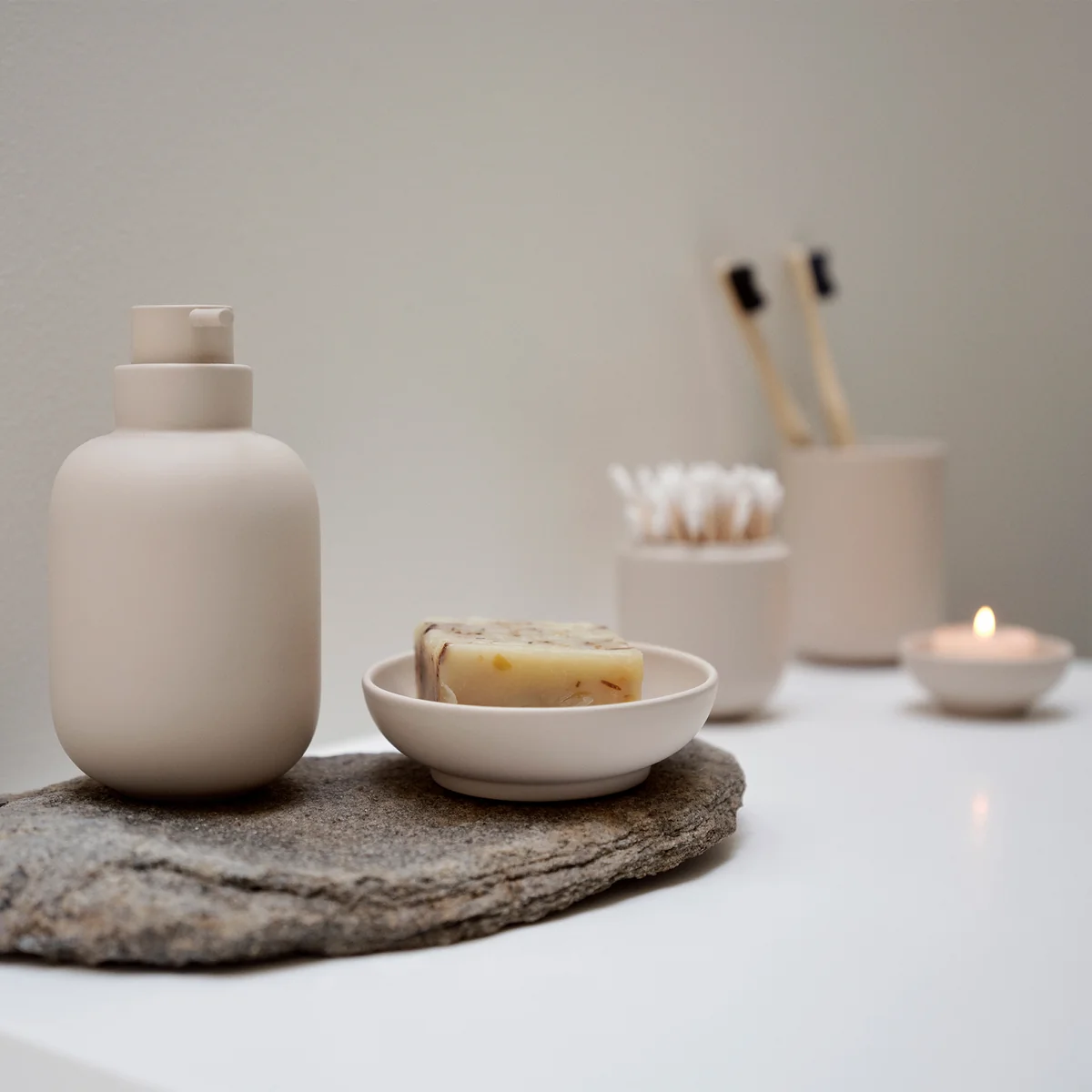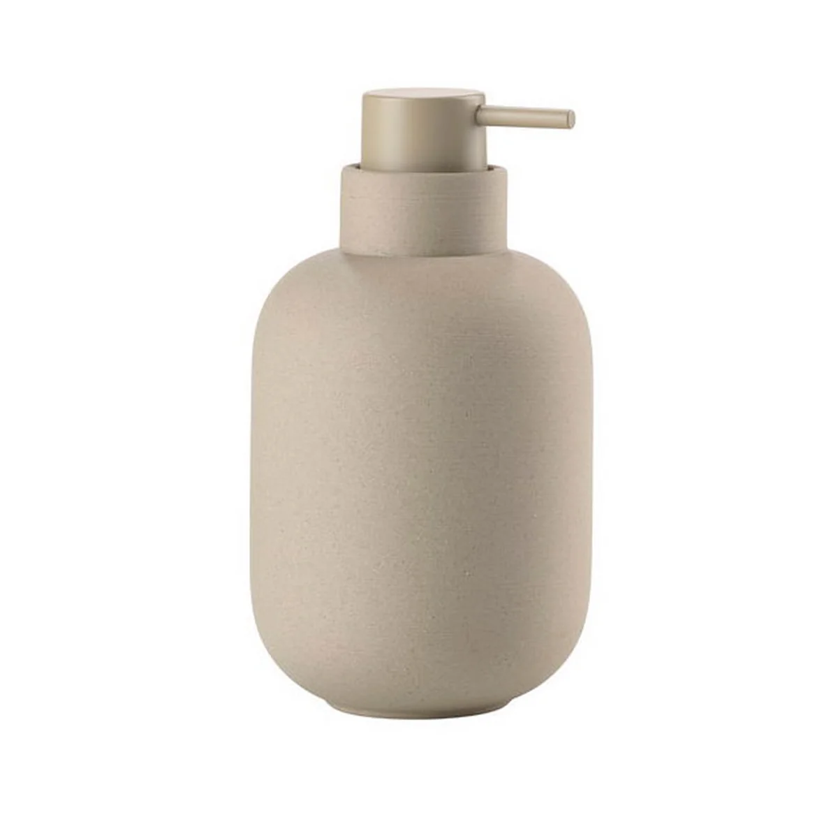 Ce distributeur de savon de la série Sensu allie un design minimaliste à une utilisation pratique. Fabriqué en grès de haute qualité, son poids assure la stabilité, tandis que ses courbes douces créent un aspect harmonieux. La fine tête de pompe permet un dosage précis et s'intègre discrètement dans l'ensemble.