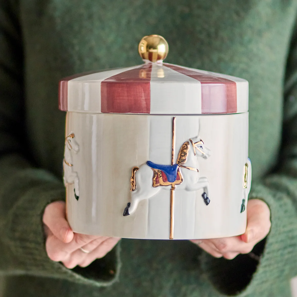 Bloomingville - Merry-go-round Boîte de rangement, Ø 19,5 × H 20,5 cm, rouge