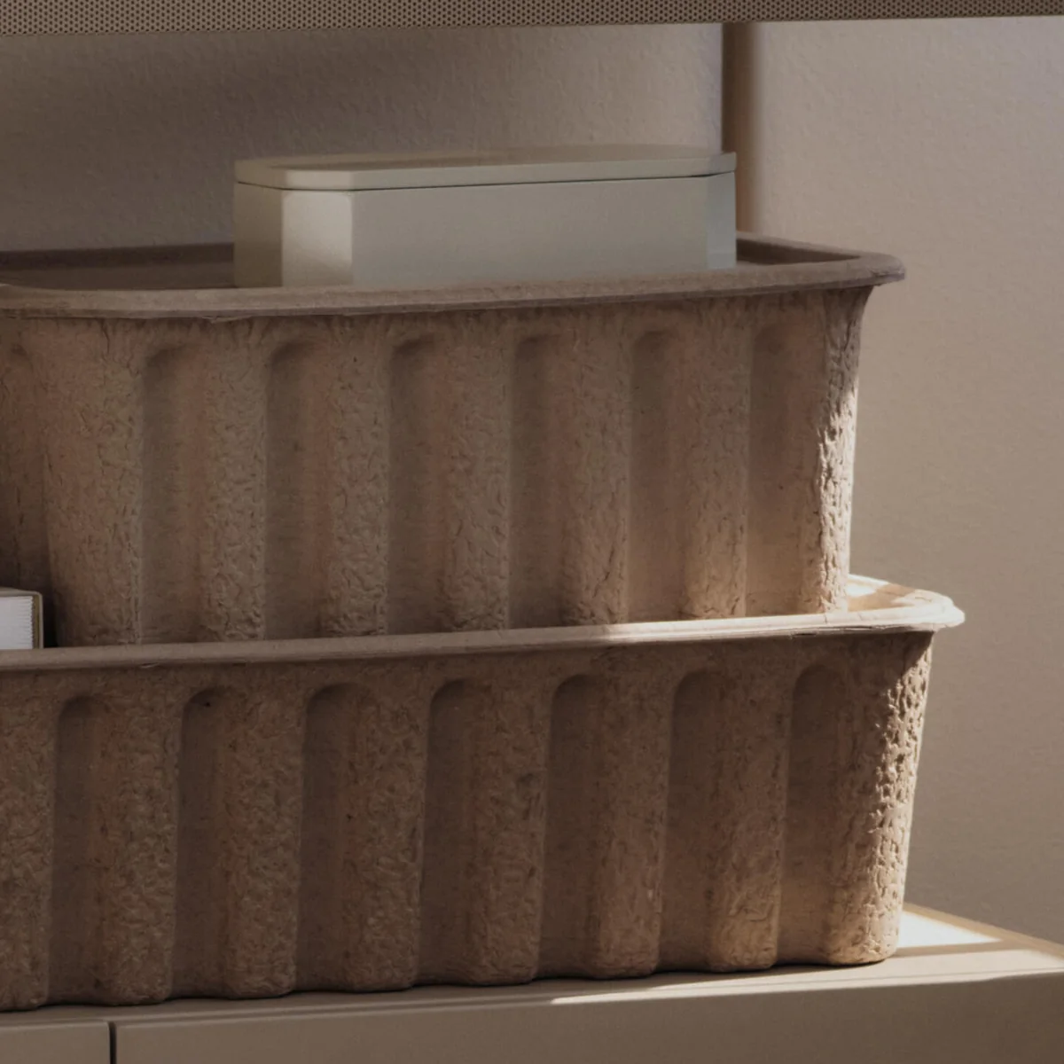 La boîte de stockage e Paper Pulp par Ferm Living est une solution de stockage pratique, légère et empilable. Disponibles par deux, ces boîtes robustes permettent de trier lettres, dossiers, chaussures, jouets, souvenirs et bien plus encore. Dans la chambre des enfants, les boîtes peuvent être utilisées pour mettre rapidement de l'ordre et au bureau, les boîtes sont des solutions discrètes pour ranger les ustensiles d'écriture. La boîte de rangement Paper Pulp de Ferm Living dans un ensemble pratique de 2 convient également comme lieu de rangement inhabituel à côté du lit lorsqu'ils sont empilés les uns sur les autres.