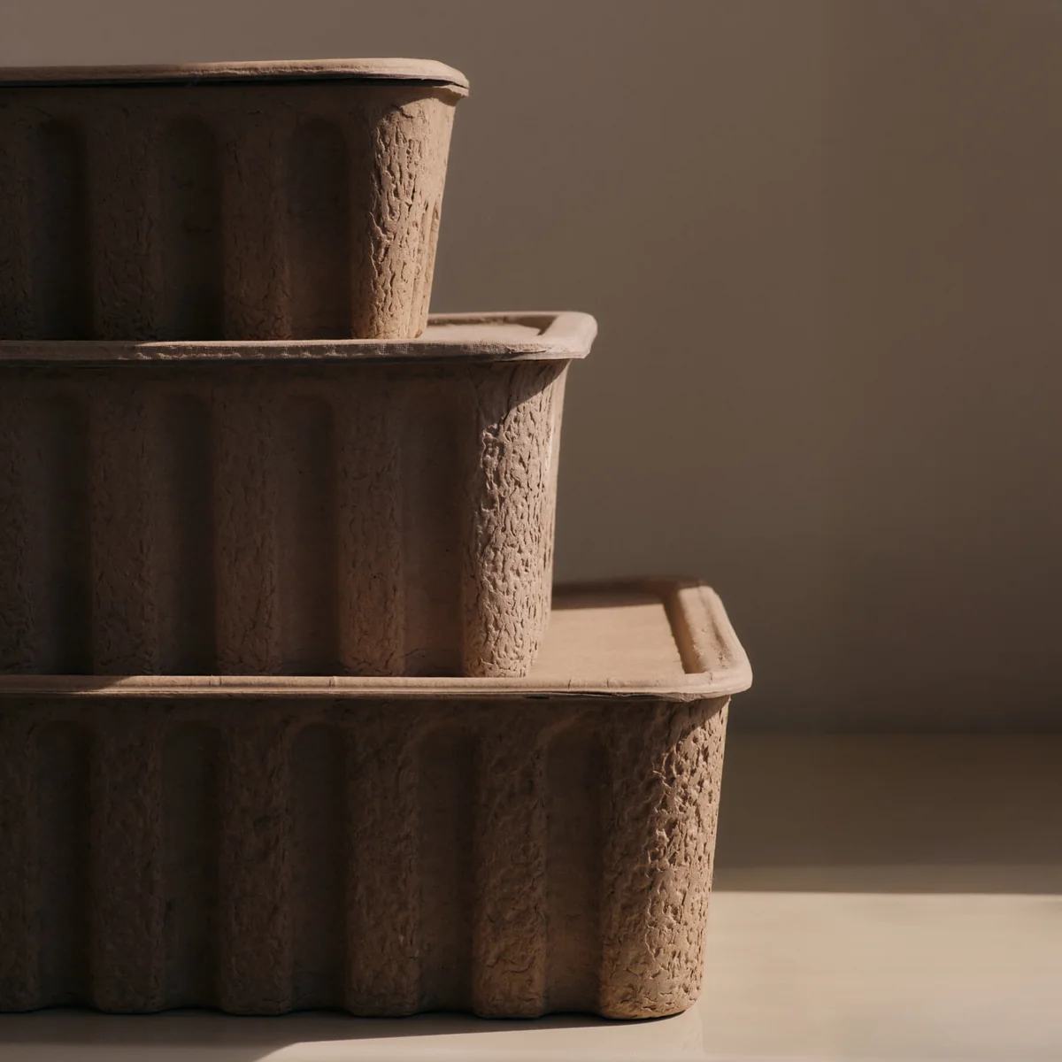 Les boîtes sont fabriquées à partir de pâte à papier 100 % recyclée.