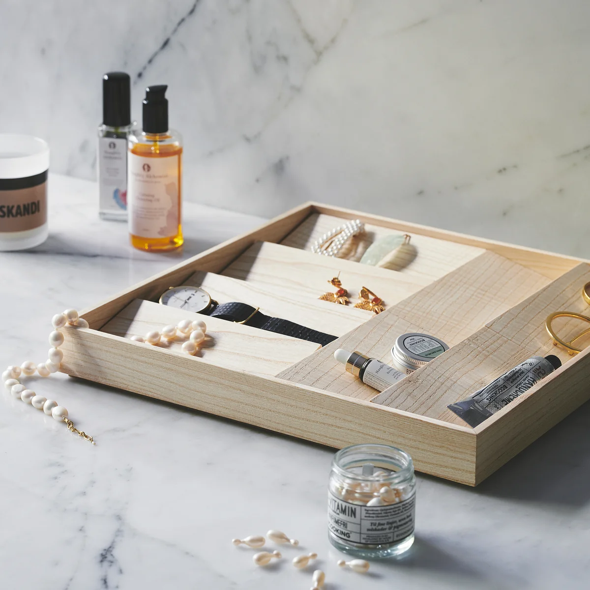 Inspiré par les dunes de sable du paysage derrière Valence, l'organiseur Duune Organizer a été conçu par Gejst . L'organiseur se compose d'un cadre en chêne ou en frêne dans lequel sont disposés plusieurs blocs de bois. Ceux-ci créent une multitude de petits rangements pour les bijoux et peuvent être disposés individuellement. Le Duune Organizer, en noir élégant ou en ton naturel, est idéal pour ranger les bijoux et les montres avec style. Le coffret de Gejst peut être placé sur une commode dans la chambre à coucher ou sur une étagère dans la salle de bains. En alternative, il Duune Il peut également être posé sur le bureau pour y mettre de l'ordre.