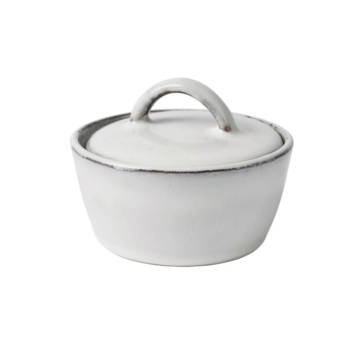 La table est fabriquée en Nordic Sand Le bol avec couvercle de Broste Copenhagen est en faïence résistante au lave-vaisselle et disponible en différentes couleurs. D'autres ustensiles de la série Nordic assortis au bol sont également disponibles.