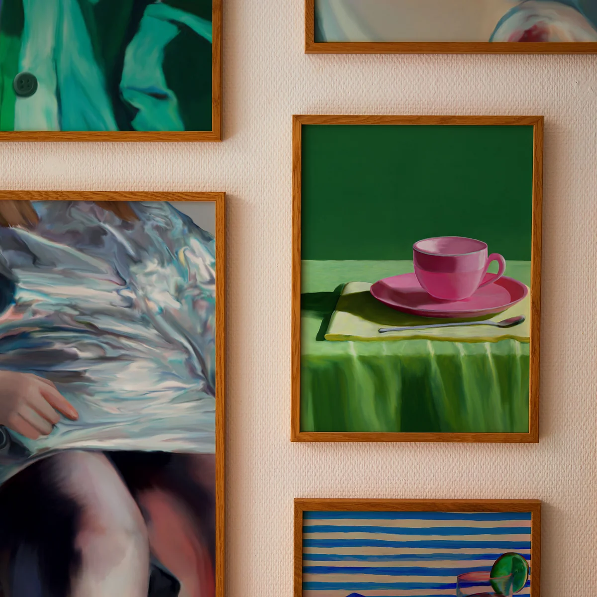 Le poster Still Here de Misfitting Things pour Paper Collective est un superbe mélange de couleurs et de textures. La tasse rose vif sur un fond vert luxuriant attire immédiatement l'attention. Cette nature morte peut trouver sa place dans n'importe quelle pièce, en particulier dans la cuisine ou la salle à manger.