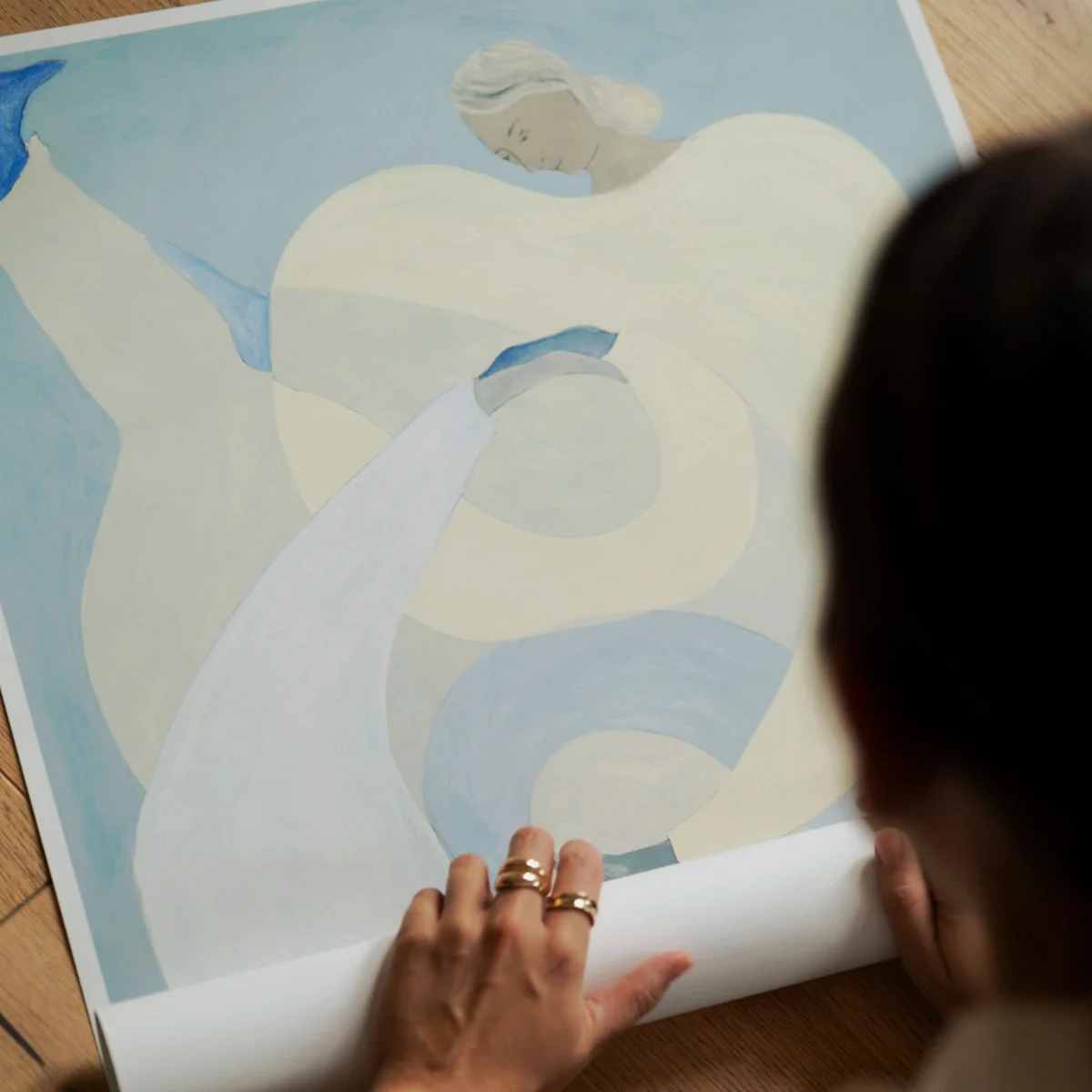 L'impression Hold You - Blue Fine-Art-Giclée de Sofia Lind pour The Poster Club enthousiasme par sa technique d'impression grandiose. Le motif dynamique séduit ici par la profondeur de ses nuances de couleurs intenses. En combinaison avec le papier naturel de haute qualité, l'archivage des couleurs et une longévité maximale sont garantis.