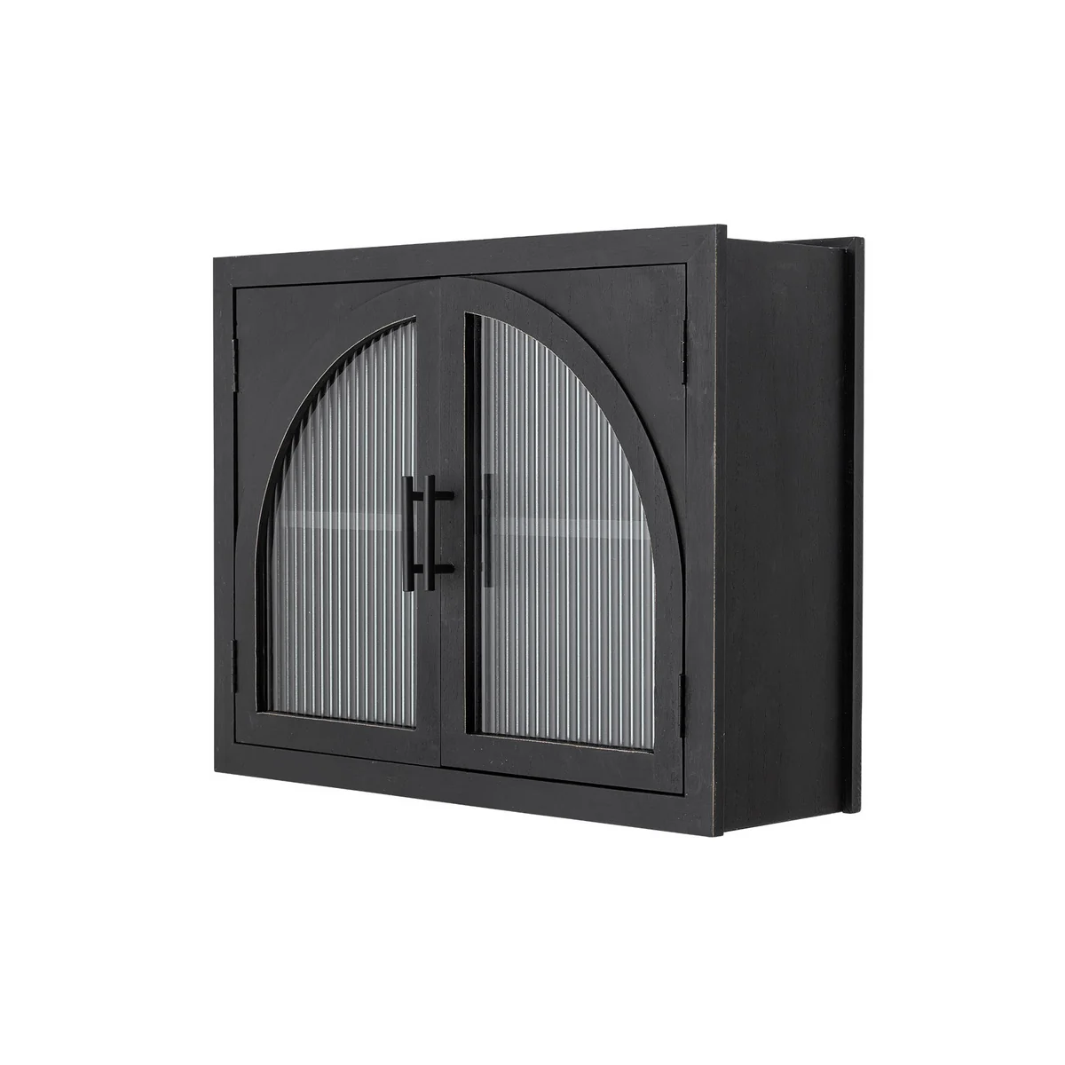 Le cabinet Lario allie fonctionnalité et design élégant. Fabriqué en pin, il séduit par sa surface noire au look légèrement usé, qui confère à l'armoire profondeur et caractère. Les portes en verre rainuré et au design délicatement incurvé apportent une touche visuelle unique. Idéal pour ranger et présenter avec style vos objets préférés - un meuble élégant pour le salon et la salle à manger.