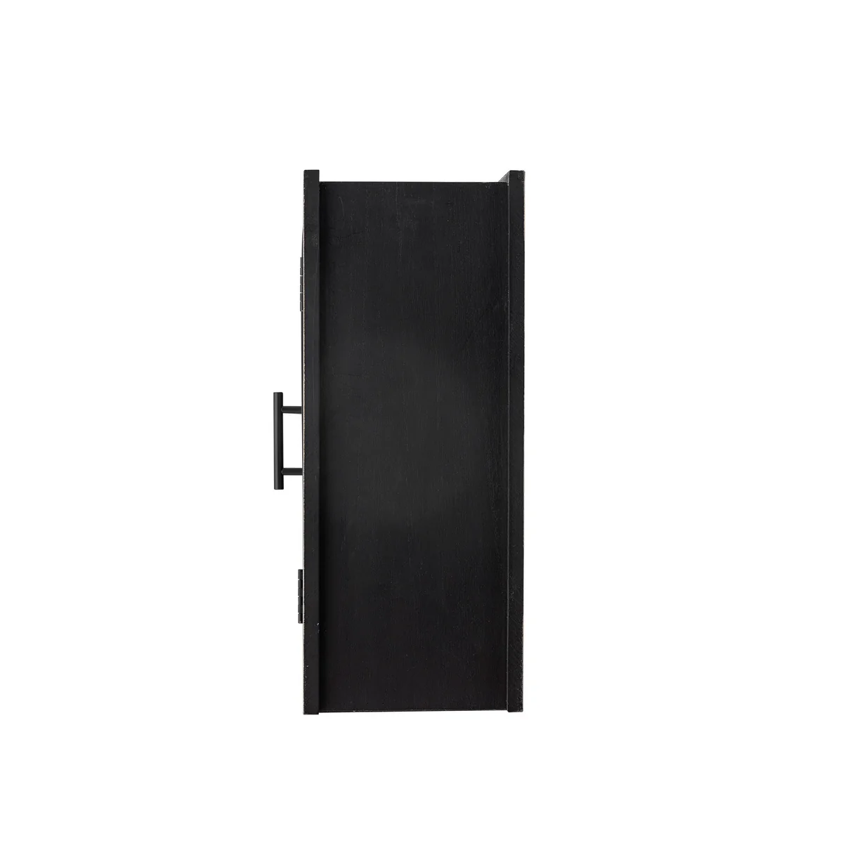 - Fabriqué en bois de pin avec une finition laquée noire.
