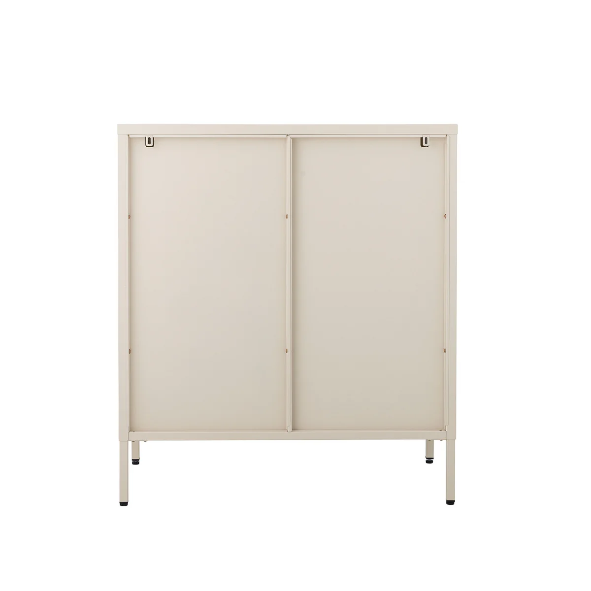 Le cabinet Salvo séduit par son design élégant dans un doux ton sable. Fabriqué en métal, il combine fonctionnalité et détails esthétiques. Les deux portes sont dotées d'un verre décoratif strié qui confère à l'armoire une légèreté stylée. Avec ses étagères pratiques, l'armoire est idéale pour le rangement et la présentation - parfaite pour le salon, la salle à manger ou l'entrée.
