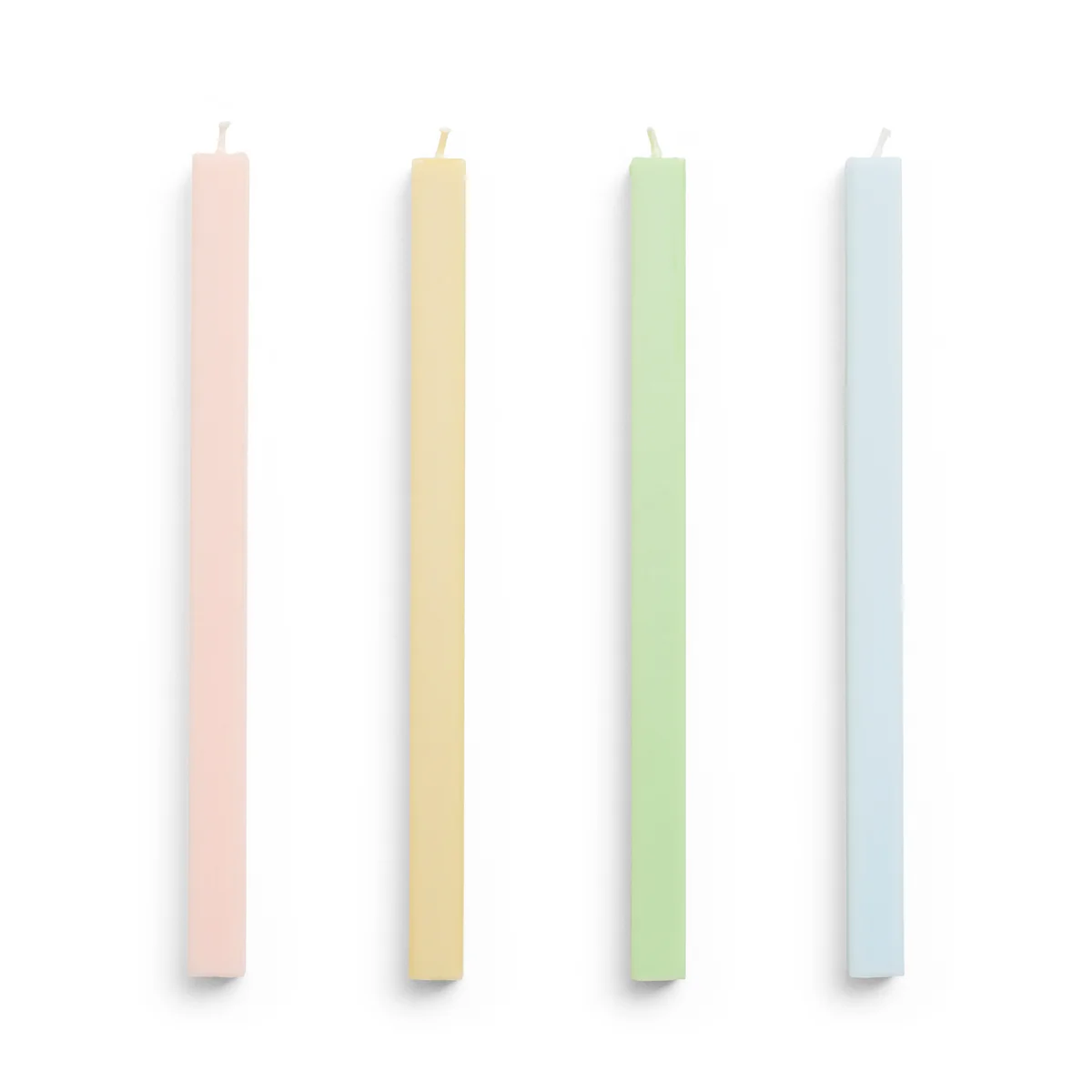 Avec une forme carrée élégante et une finition mate, ces bougies colorées Square sont conçues par HAY pour être tout aussi remarquables, qu'elles soient groupées ou affichées individuellement. Certifiées par l'écolabel Nordic Swan, elles ont une durée de combustion d'environ 7 heures. Les bougies carrées sont disponibles par set de quatre, avec différents mélanges de motifs au choix.