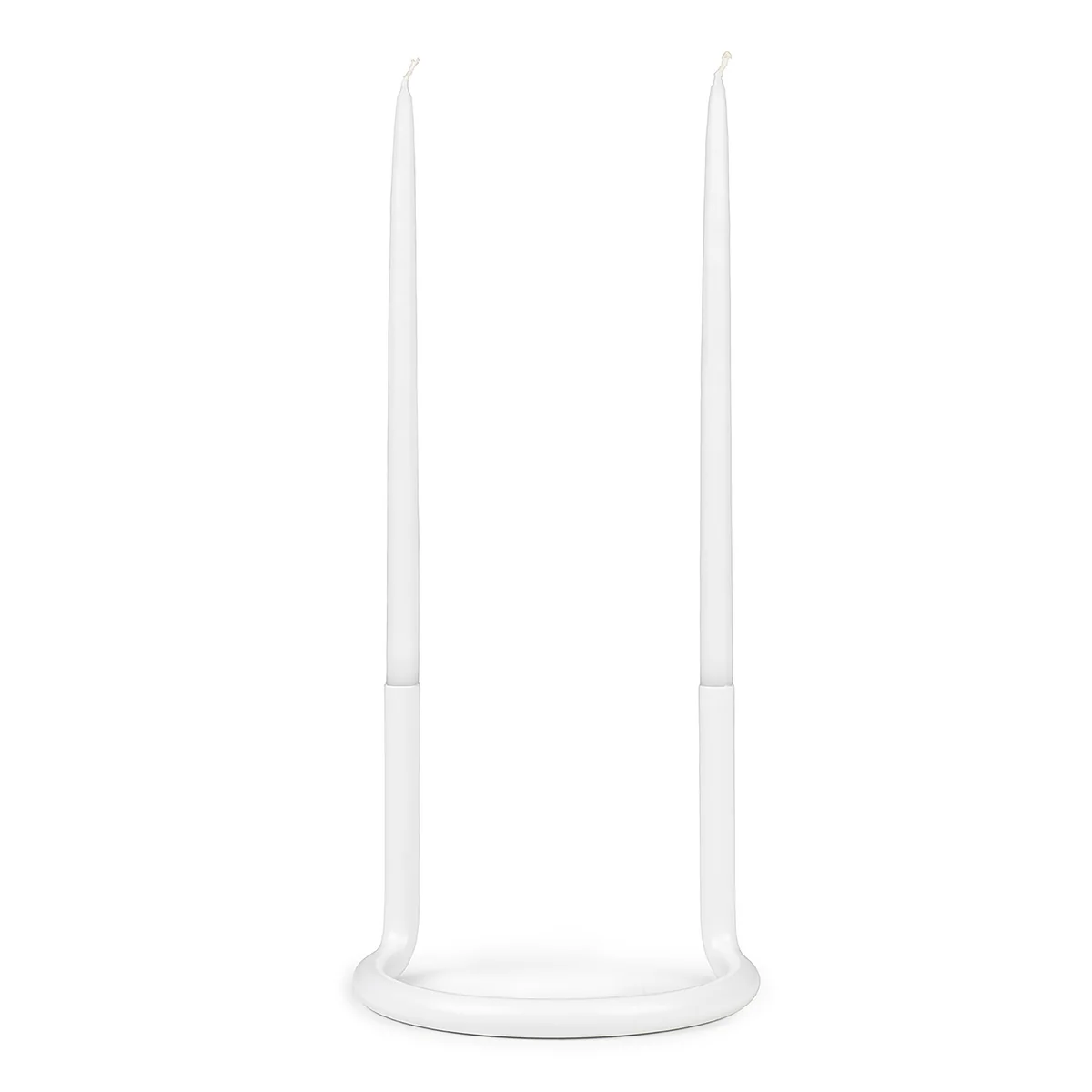 Le bougeoir Gemini d'ArchitectMade a été conçu par Peter Karpf. Cet élégant support allie parfaitement forme et fonction. Fabriqué en acier inoxydable massif, il est disponible en finition polie, noire mate ou blanche mate. Le Gemini maintient en toute sécurité deux bougies à une distance optimale et offre une durée de combustion allant jusqu'à 4 heures. Il peut être utilisé seul ou dans des combinaisons créatives. Il apporte une touche de style avec ses lignes épurées et le contraste entre la cire des bougies et l'acier inoxydable.