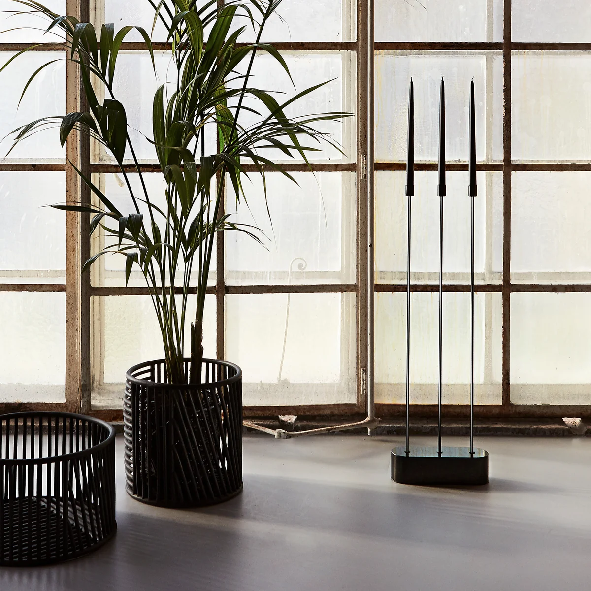 Le bougeoir de sol convient également aux petites pièces ou aux escaliers grâce à sa forme mince et élégante. Il est disponible dans différentes variantes de matériaux et offre trois fentes pour les bougies conventionnelles et fines.