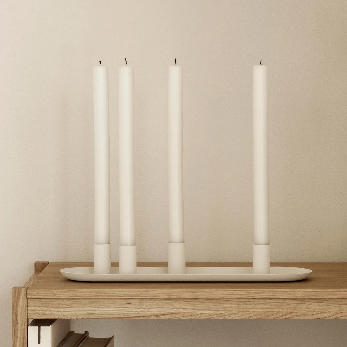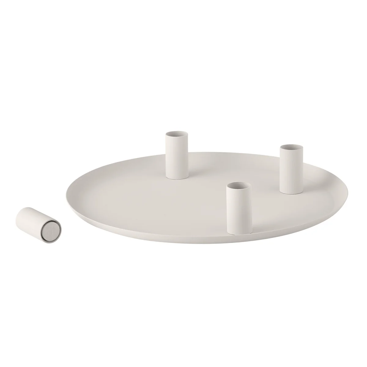 Les bougeoirs peuvent être disposés librement sur le plateau grâce à des éléments magnétiques. On obtient ainsi une composition individuelle qui peut être sans cesse renouvelée en fonction de l'humeur, de la saison ou de l'occasion. Qu'il soit utilisé comme objet de décoration élégant ou comme base d'ambiance pour les bougies pendant les moments de convivialité, le bougeoir Loha est un objet polyvalent intemporel pour un habitat moderne.