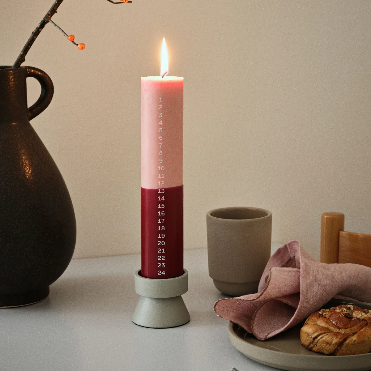 Dans leur simplicité raffinée, les chandeliers Anker de Broste Copenhagen présentent l'esthétique du minimalisme avec une touche d'élégance. Ces supports, moulés en aluminium revêtu par poudre, sont disponibles dans un ton sable doux et terreux ainsi que dans un noir intense et classique. Chaque bougeoir est conçu pour accueillir des bougies de table, ce qui le rend idéal pour les espaces modernes et traditionnels. La finition mate et rugueuse de la série Anker crée un contraste de texture unique avec son design élancé et associe des lignes souples à une forme compacte.