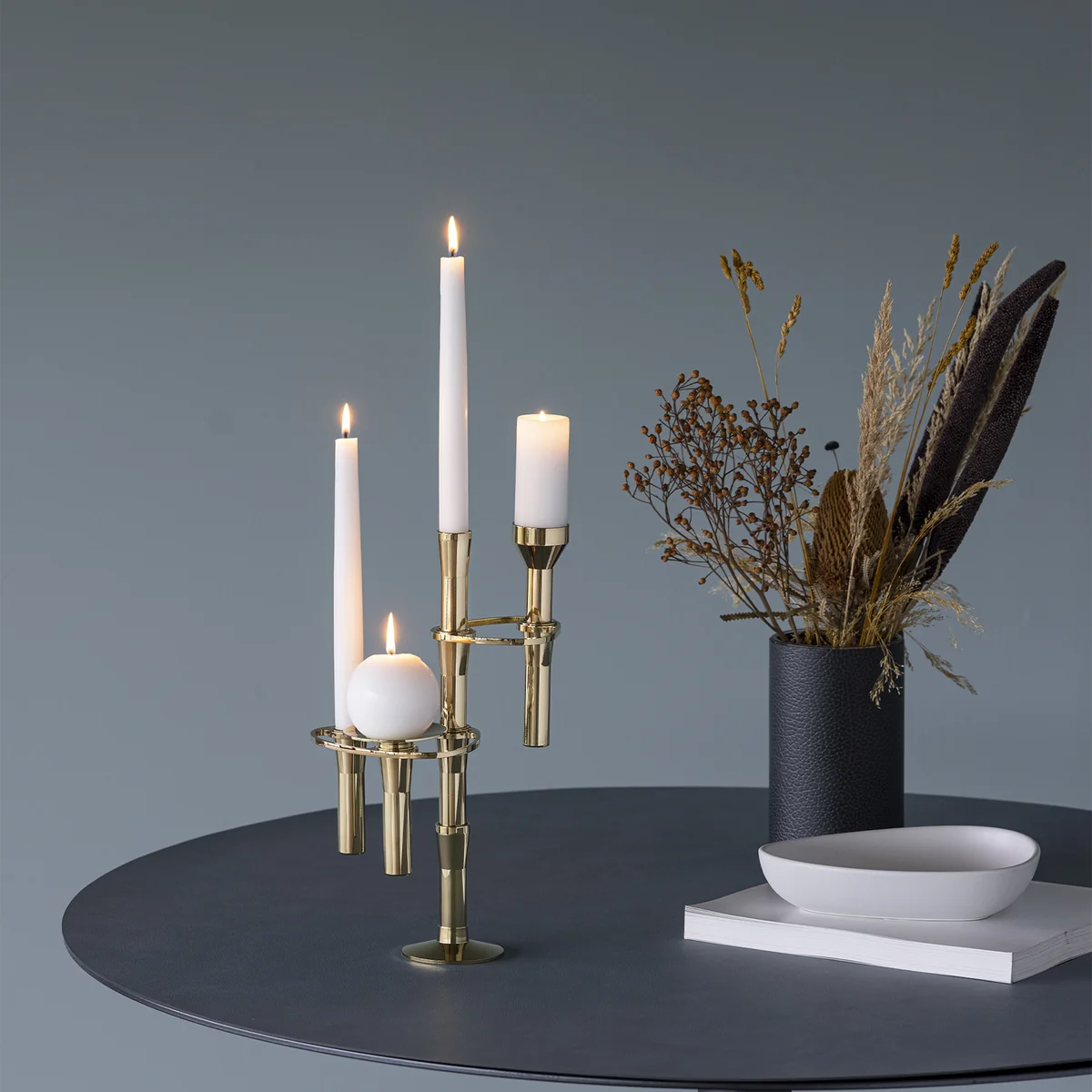 Avec le design reconnaissable entre mille Curve de Lind DNA , nous proposons désormais un bougeoir composé de différents matériaux. Les différents composants du bougeoir peuvent également s'emboîter les uns dans les autres et, avec un peu d'imagination et de joie de construire, on obtient toute une "montagne de bougies".