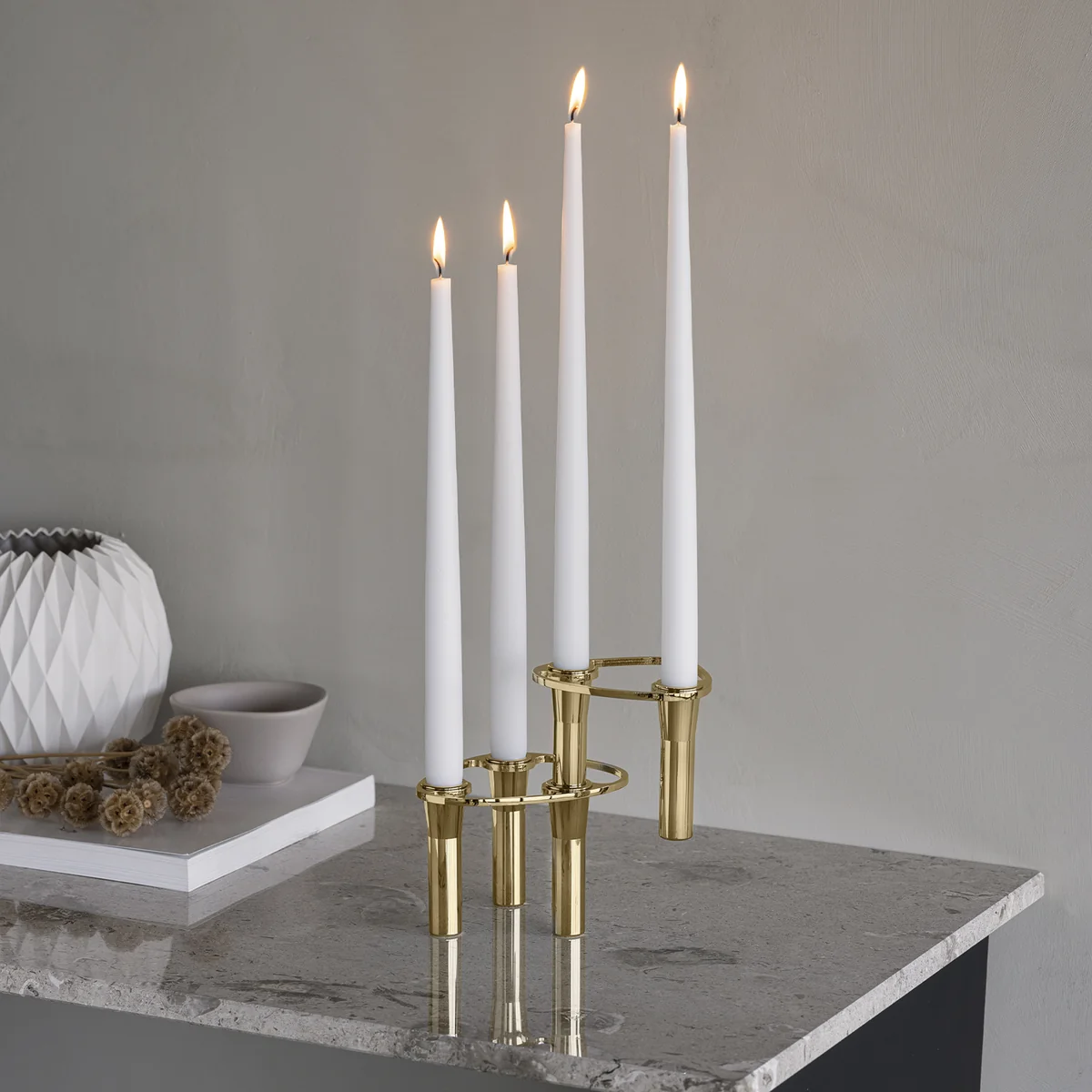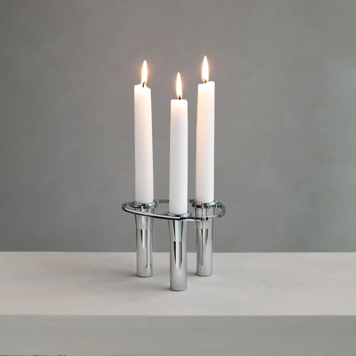Le chandelier à trois branches Base peut tenir debout tout seul et constitue la base de votre chandelier Lind Curve Le chandelier est la base. Une tige en acier inoxydable Curve -Un anneau en acier courbé, fidèle au design, maintient les supports ensemble. Avec les supports Single et Double, la collection peut être étendue. Base peut être étendu à volonté.