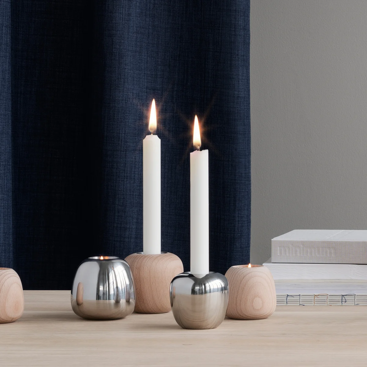 Petits chandeliers en hêtre ou en acier inoxydable