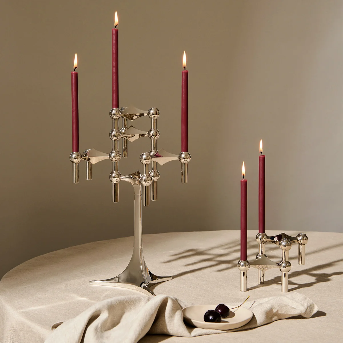 Le bougeoir enfichable a été conçu par Werner dans les années 1960. Stoff a été développé. L'idée est venue à Hans Nagel lors d'une chute pendant des vacances de ski. Il a été tellement fasciné par la symétrie lisse et élégante que trois de ses doigts avaient laissée dans la neige après la chute qu'il a décidé, avec Werner, de s'en inspirer. Stoff le site Stoff Nagel Il a créé le chandelier.
