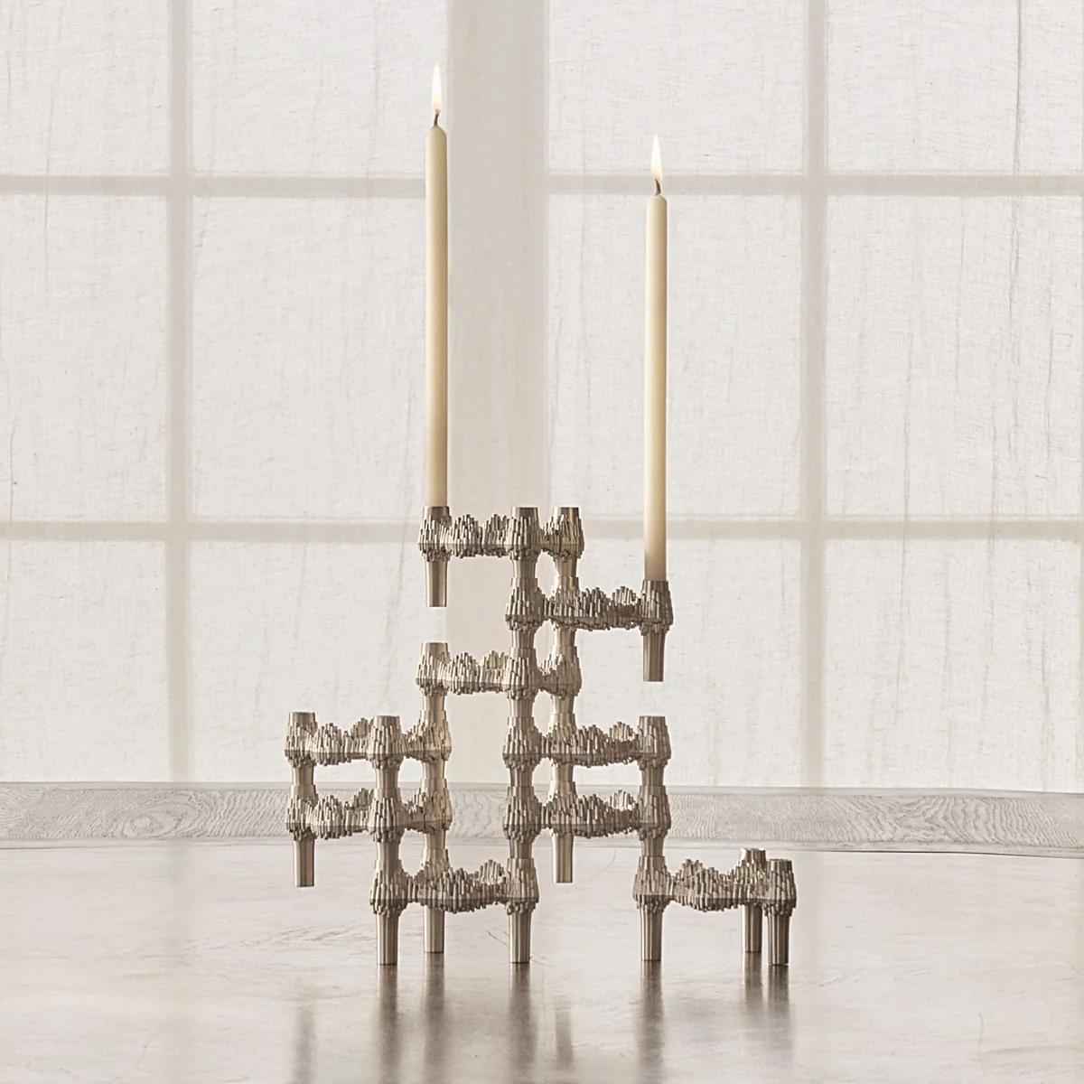 Ce qui est particulier : Chaque bougeoir peut être empilé, agrandi et combiné à volonté - pour former de petites sculptures ou des installations lumineuses de grande envergure. Qu'il soit utilisé seul, à trois ou en tant que sculpture lumineuse créative, le Quist Le chandelier est un objet fonctionnel avec une valeur de collectionneur qui apporte une lumière artistique et un charme nostalgique dans les habitations modernes.