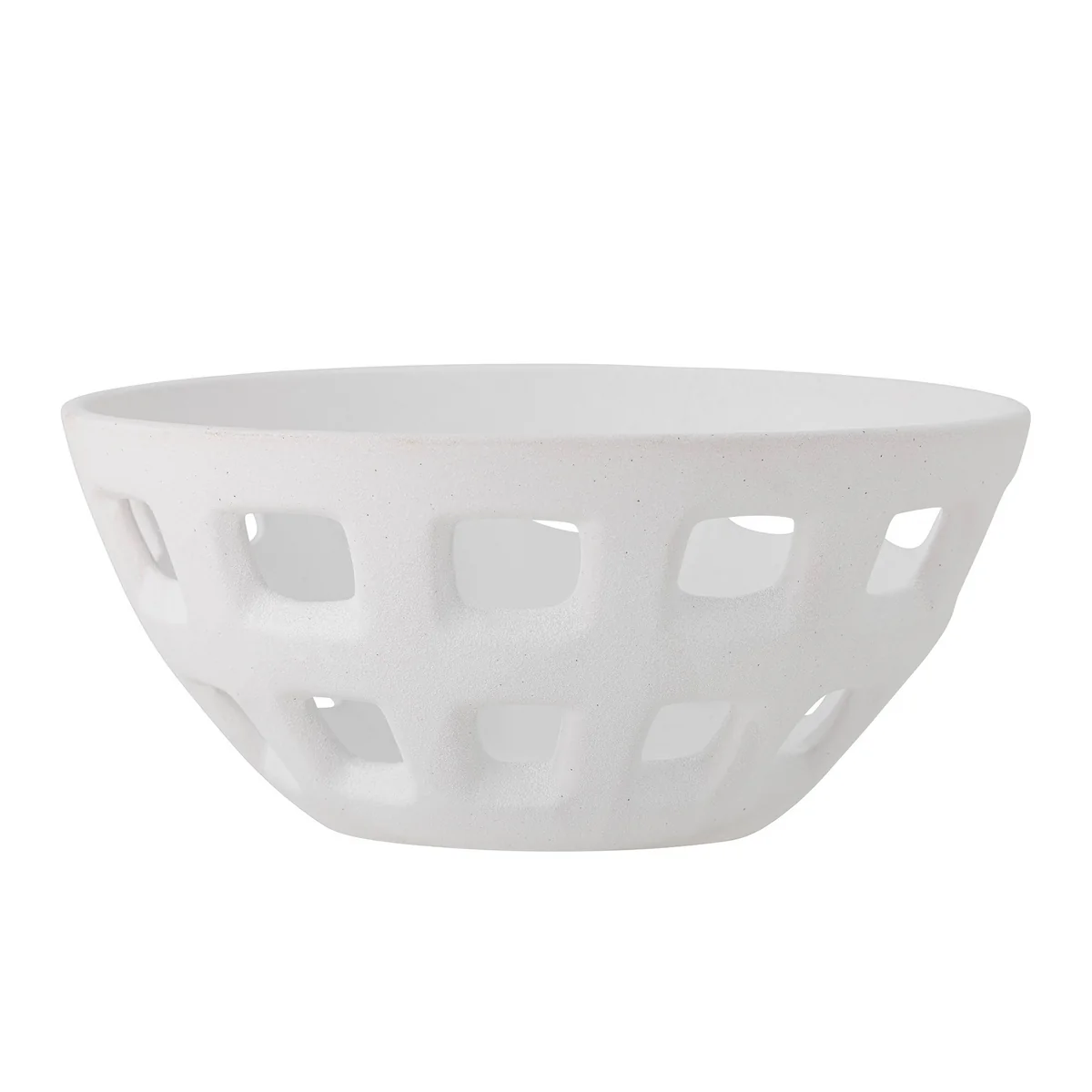 Le Foligno de Bloomingville présente un design sculptural qui se distingue du reste de la vaisselle. Ce magnifique bol est doté de trous creux qui le transforment en une superbe corbeille à fruits ou en un étonnant bol à pain dont le contenu est visible.