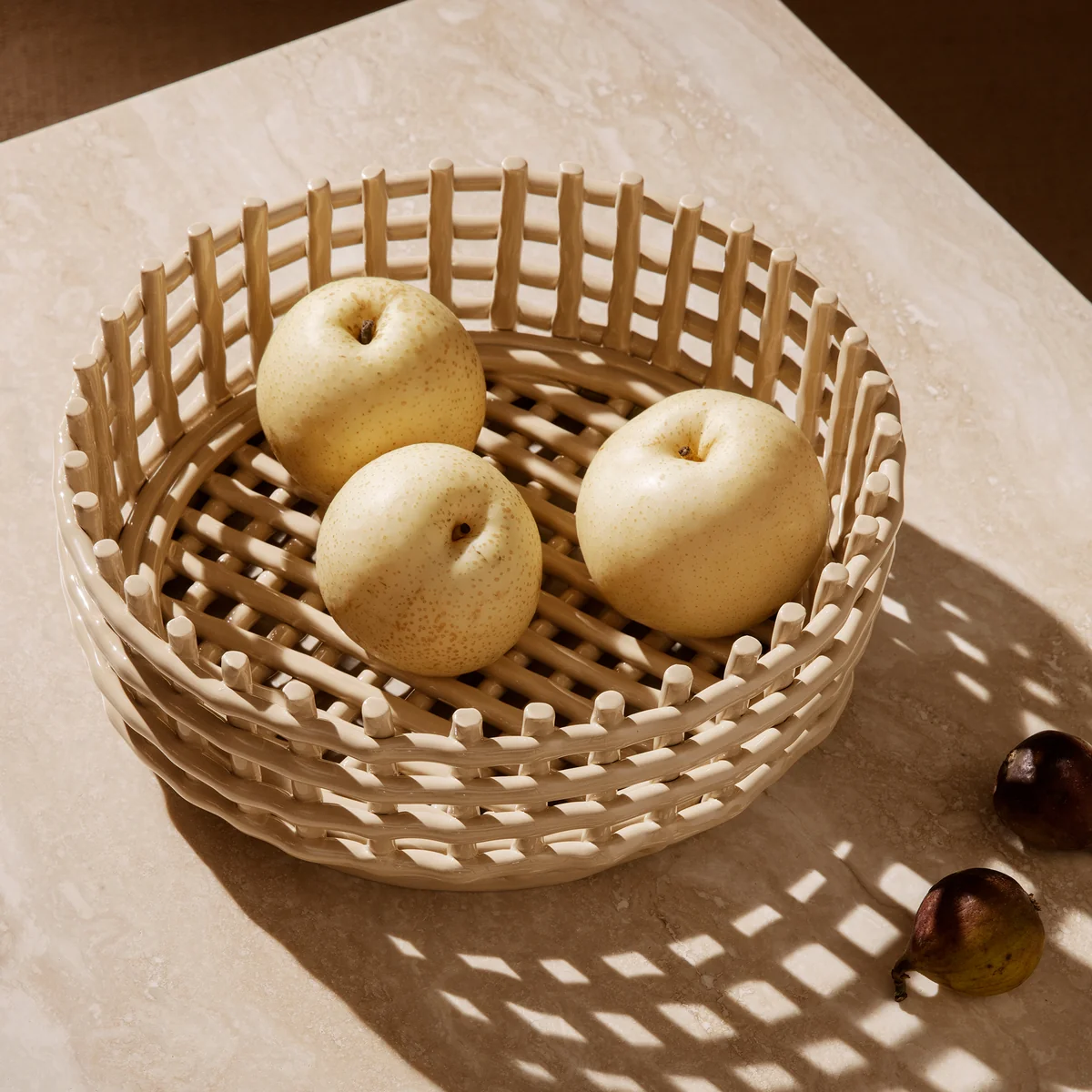 La céramique Centerpiece de Ferm Living est un panier unique pour la table à manger. Il combine l'artisanat danois traditionnel du tressage de paniers avec la poterie. Avec ses couleurs discrètes et son aspect grillagé intemporel, il est idéal pour la salle à manger et la cuisine. Le Centerpiece convient comme coupe à fruits, comme corbeille à pain, pour les snacks et les friandises, ou même pour ranger des objets personnels.