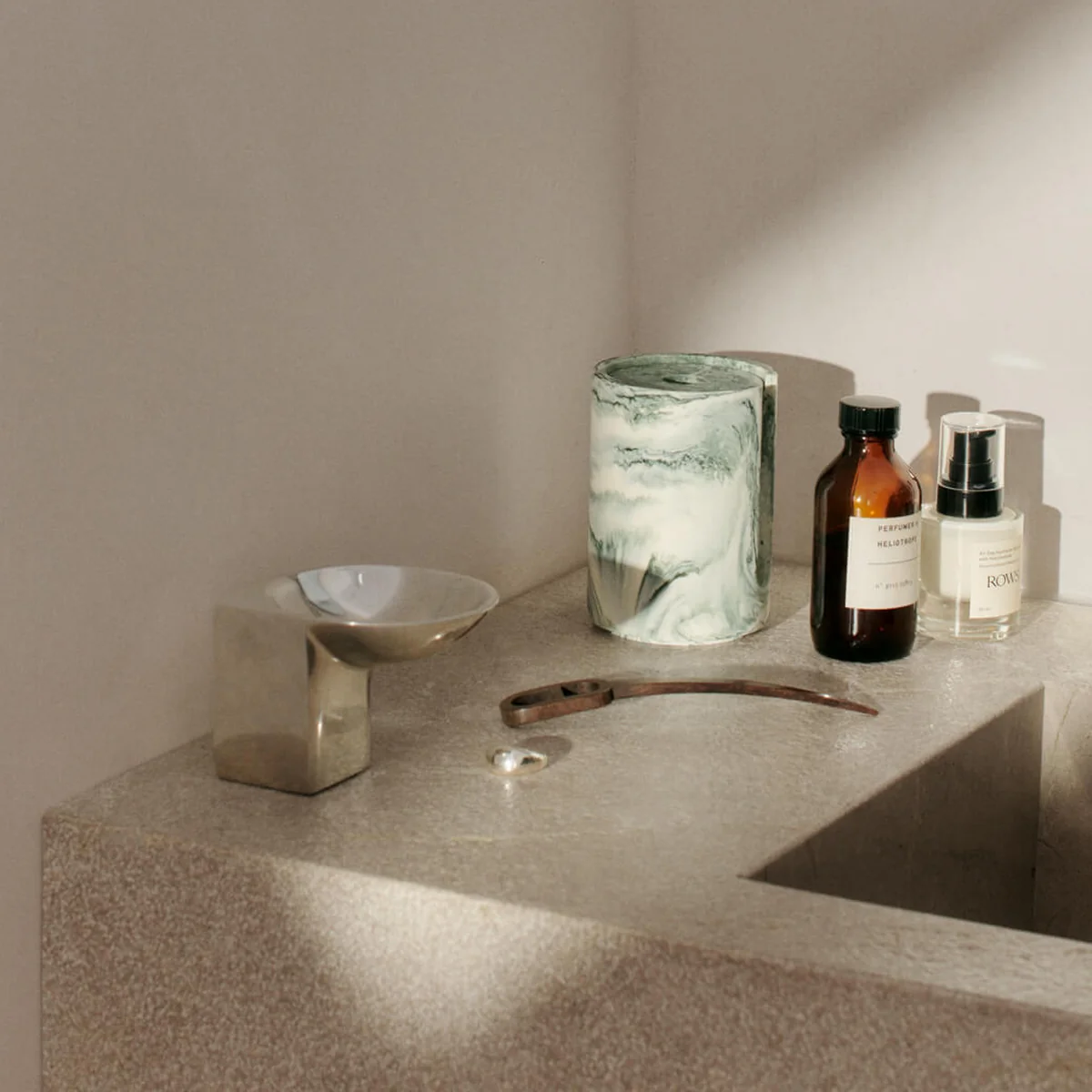 Le Santany La coupe décorative de Ferm Living allie élégance moderne et polyvalence fonctionnelle. Fabriquée en aluminium massif poli ou en laiton, elle apporte une touche de style avec sa forme sculpturale et sa surface réfléchissante. Son design raffiné reflète la lumière et crée une atmosphère particulière. Qu'elle serve de rangement pour les bijoux et les clés ou d'élément purement décoratif, la Santany La coupe enrichit chaque intérieur avec son charme contemporain.