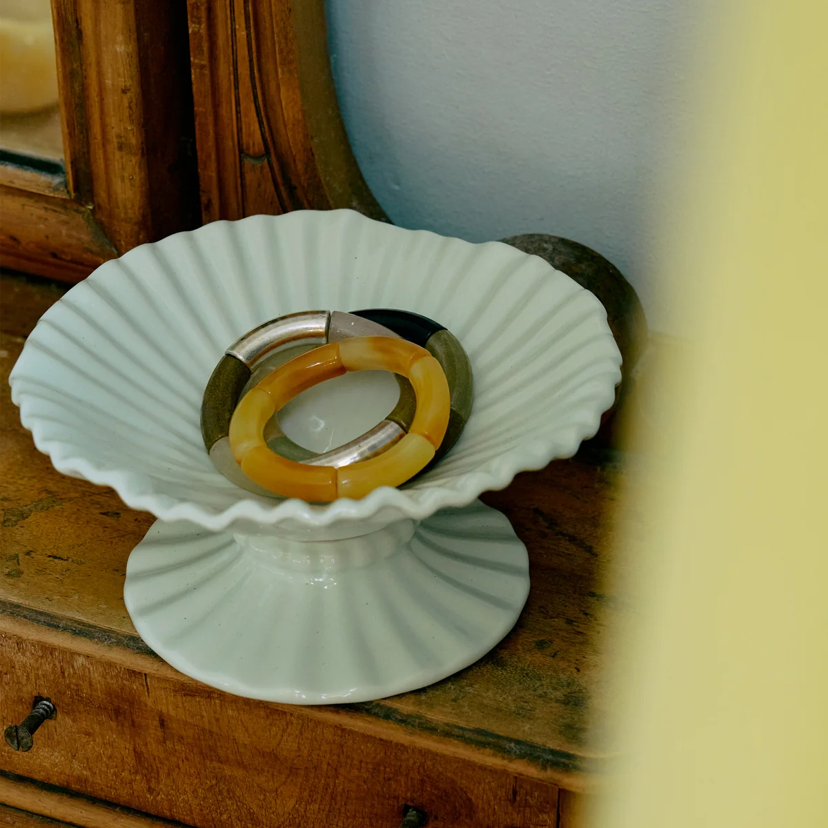 La coupe New Classics Ribble avec pied de HKliving séduit par ses formes claires et son émail mat et calme. Avec sa position surélevée et sa silhouette doucement modelée, elle a l'air d'un objet de design et convient aussi bien pour servir, décorer ou agencer avec style de petits objets. Ce modèle apporte une couleur discrète à la pièce et s'intègre harmonieusement dans différents intérieurs - intemporel, fonctionnel et avec une touche d'élégance sculpturale.