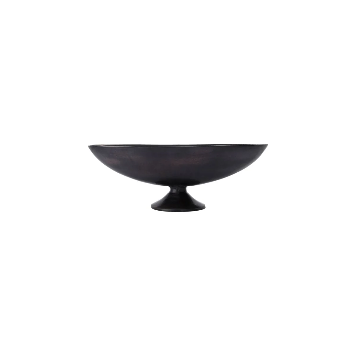 Le bol décoratif Foy de House Doctor devient le point focal de l'intérieur. Sur une table à manger ou un buffet, le bol de forme ovale peut être rempli et combiné avec de nombreuses décorations. Le grand bol décoratif est fabriqué en aluminium et recouvert d'une glaçure en laiton foncé, qui lui confère une structure particulière. Le petit pied qui soulève le bol ovale en l'air est un point fort.