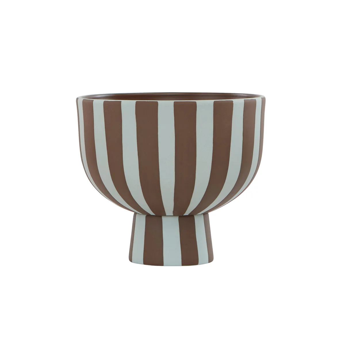 Les Toppu coupes avec pied allient une élégance intemporelle à un aspect rayé marquant. Fabriquées en céramique 100% artisanale, elles apportent une touche de style à tous les intérieurs. Elles sont idéales comme coupe décorative, pot de fleurs ou pour servir des fruits et des snacks, car elles sont aptes au contact alimentaire.