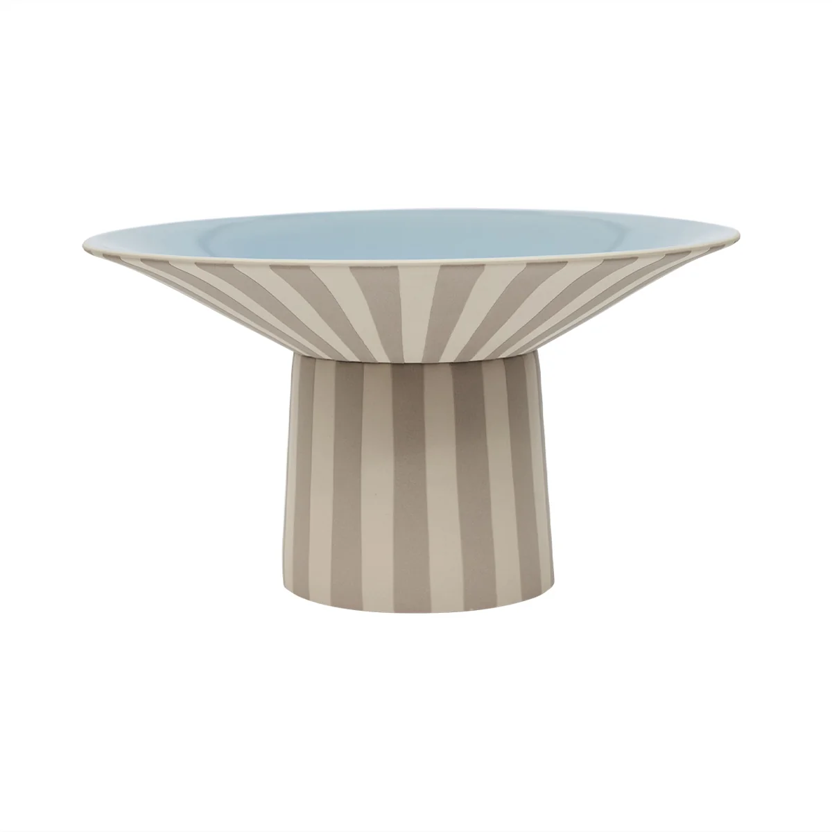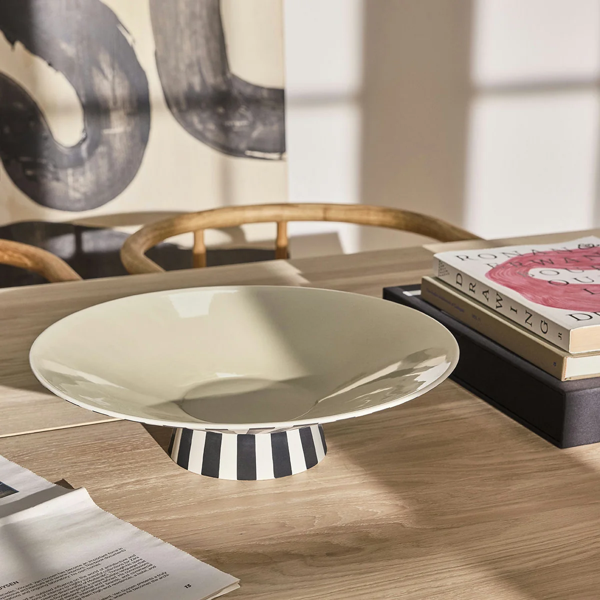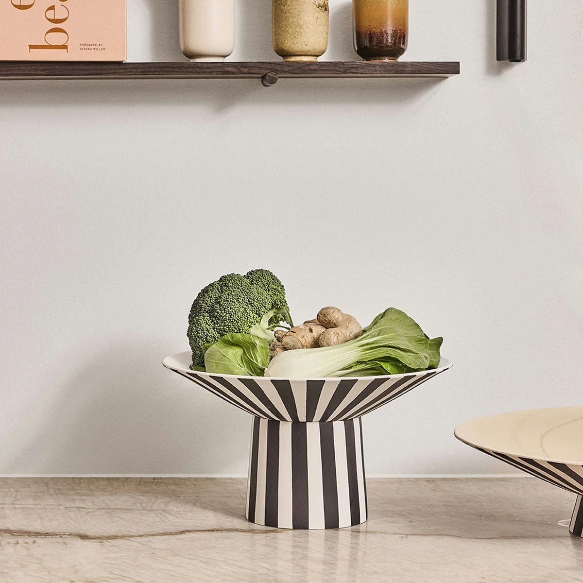 Le Toppu Centerpiece Coupelle décorative avec pied est une pièce maîtresse sculpturale qui, avec ses rayures vives peintes à la main, confère à chaque table une note stylée et ludique. Qu'elle soit utilisée comme coupe décorative, coupe de service ou pour ranger de petits objets, cette pièce de design unique allie fonctionnalité et art.