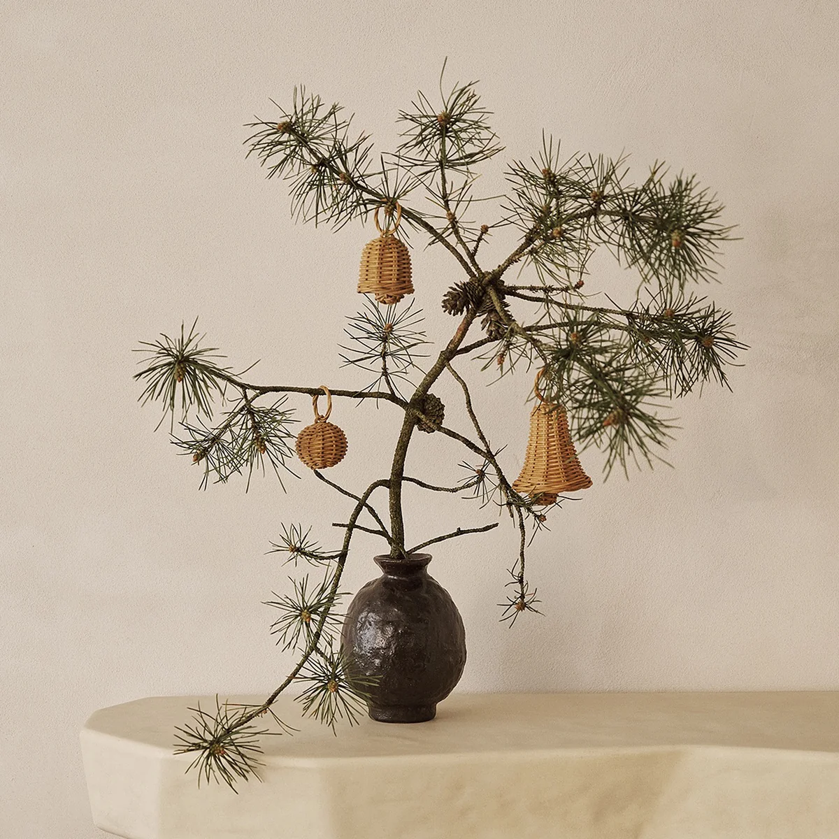 Les cloches tressées de Ferm Living, au charme indéniable, sont soigneusement tressées à la main en 100 % rotin. Le set joue avec des proportions ludiques et propose des versions uniques de la cloche de Noël classique, créant ainsi un contraste inimitable. Chaque cloche est dotée d'une boule de rotin miniature et d'un crochet de suspension qui forment une finition élégante. Le rotin naturel de couleur miel apporte chaleur et authenticité à toute décoration de Noël. Les boules peuvent être suspendues individuellement ou en groupe, que ce soit pour former un fanion ou pour décorer le sapin de Noël.
