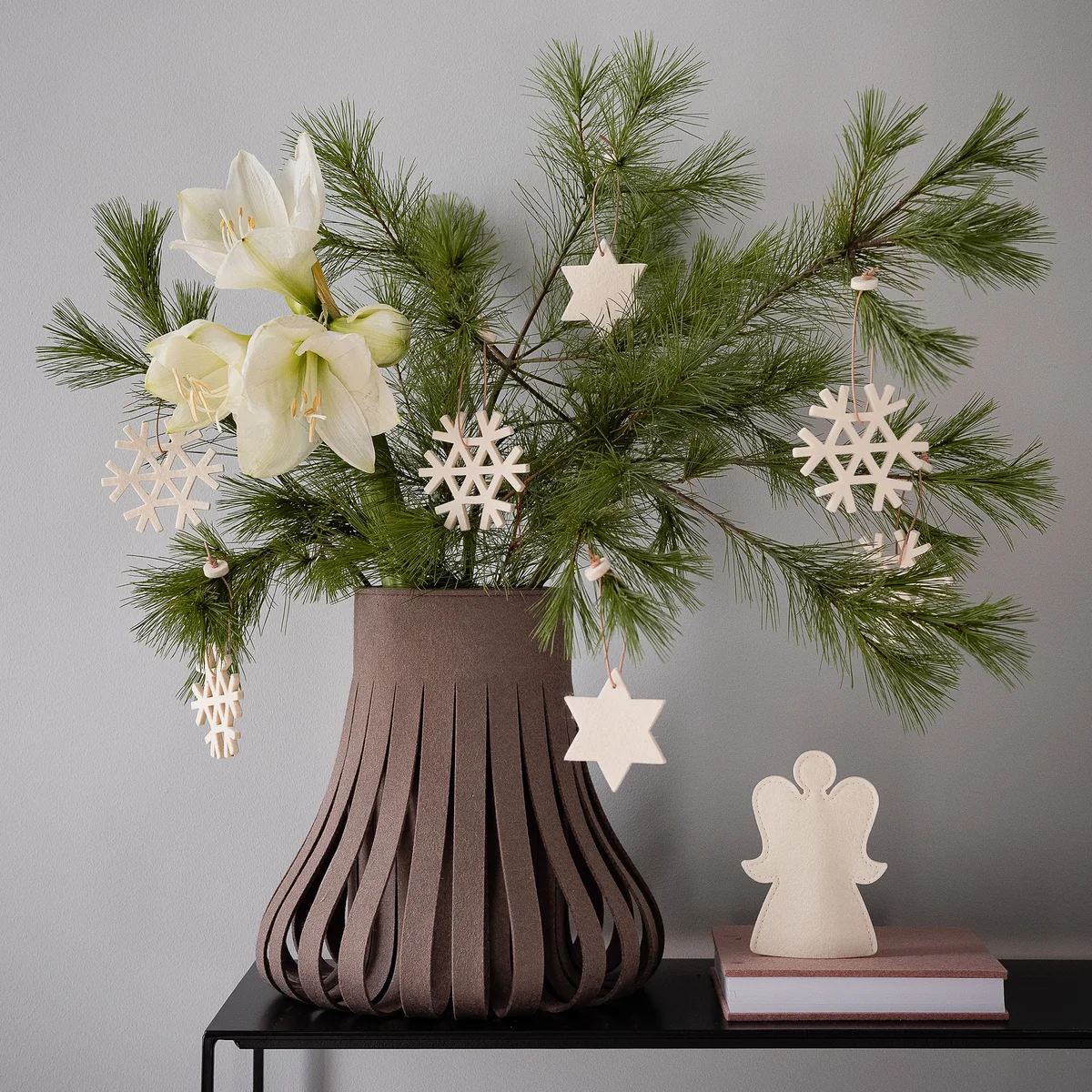 Le pendentif Cristal de neige de Hey-Sign complète parfaitement toute décoration de fête. Que ce soit comme bijou sur le sapin, comme idée de cadeau créative ou comme décoration de table stylée, il apporte une atmosphère de Noël pleine d'ambiance dans chaque pièce. Le pendentif est composé à 100% de pure laine vierge et est muni d'un cordon en cuir de haute qualité. Chaque set contient quatre pièces, disponibles en plusieurs couleurs. Grâce à sa stabilité dimensionnelle, sa robustesse et sa longévité, le pendentif est particulièrement facile à entretenir. De plus, il est résistant à la saleté et à l'eau, ce qui en fait un objet de décoration pratique et beau.