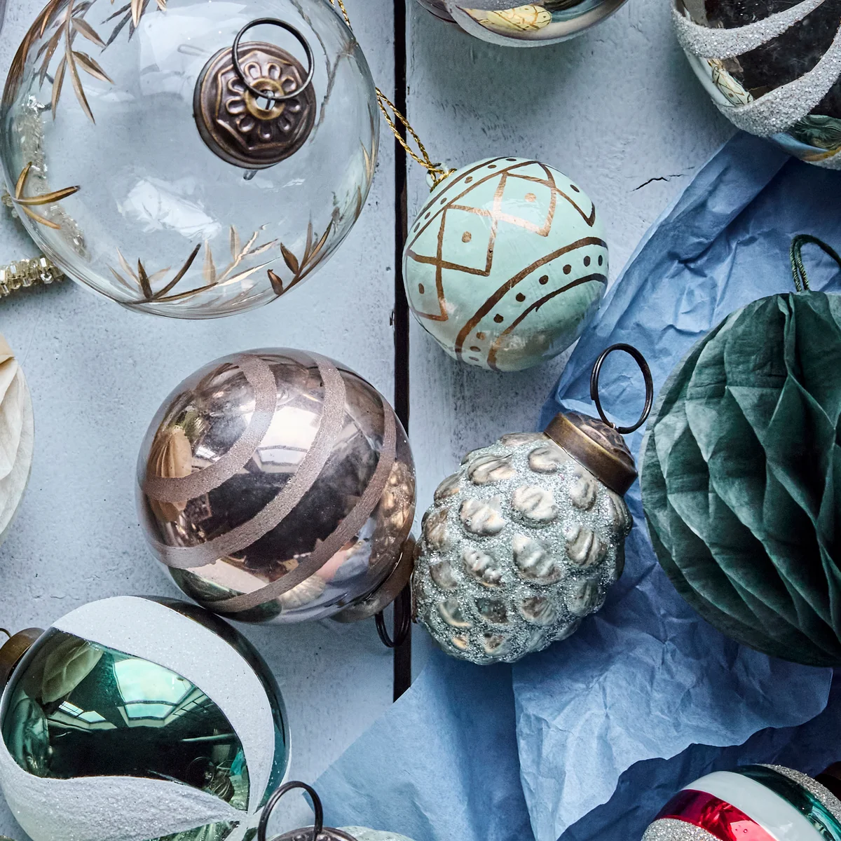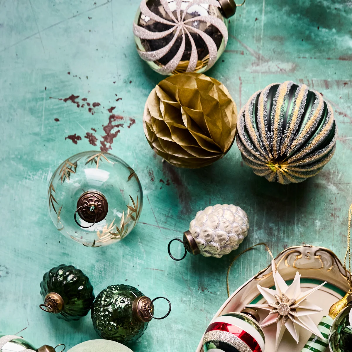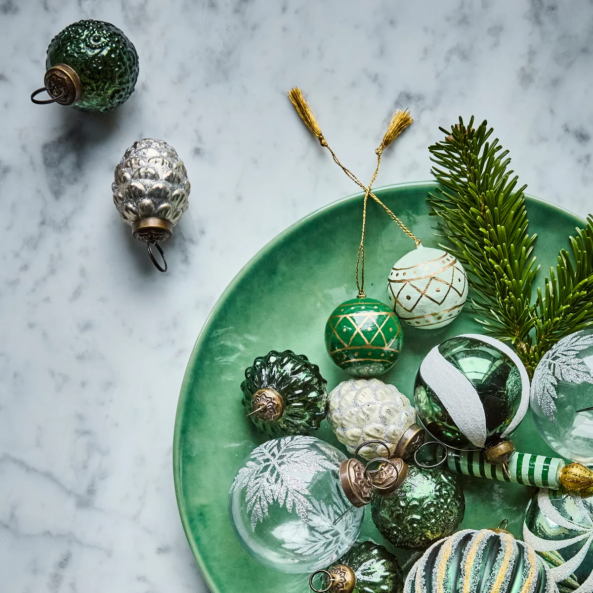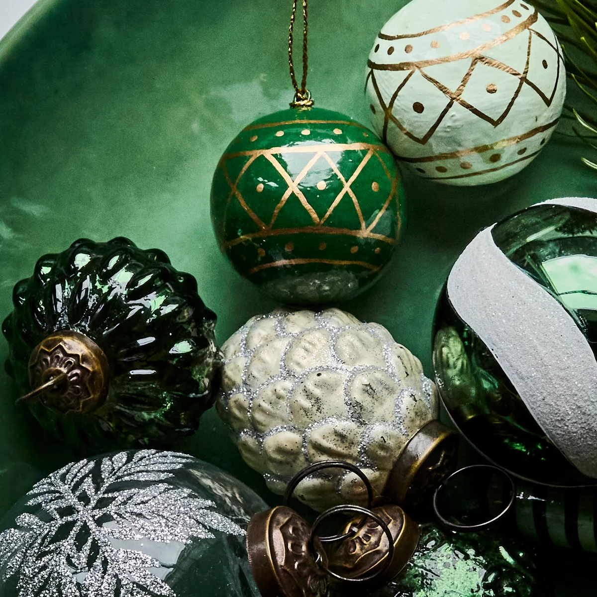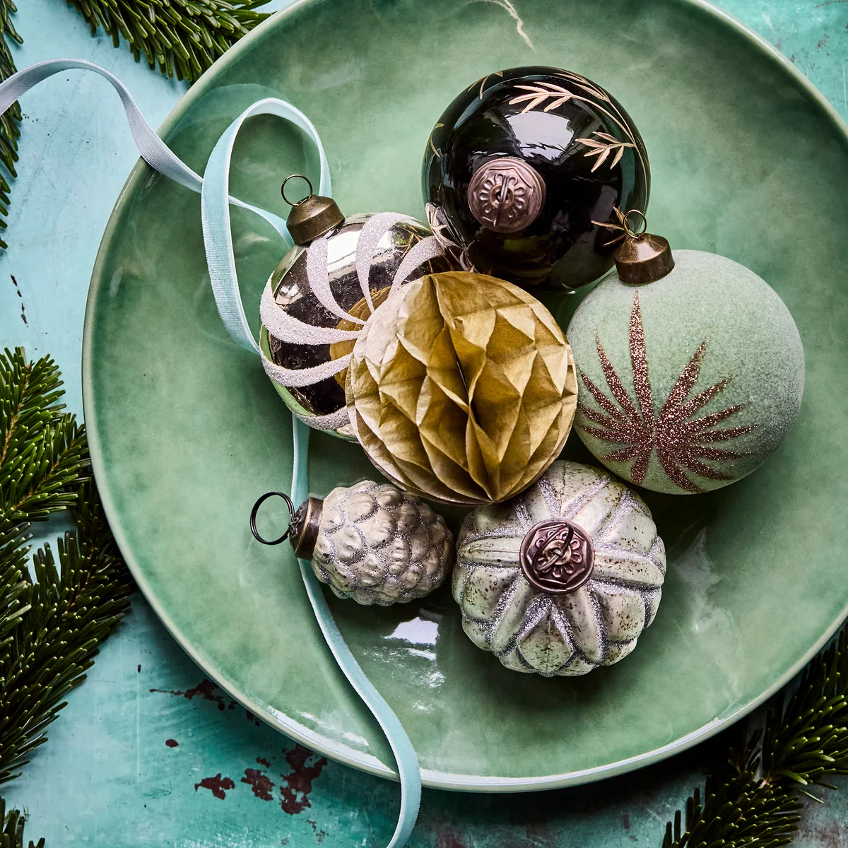 Le Cone Ornamente de House Doctor décore le sapin de Noël d'une manière élégante et classique. Les pommes de pin scintillantes ont un effet mystérieux et élégant et font briller le sapin de Noël. Dès que l'intensité des lumières est réduite, les pommes de pin se mettent à briller doucement et créent une atmosphère magique dans la pièce. Présentées dans un set pratique de 6, ces décorations peuvent être utilisées dans tous les intérieurs.