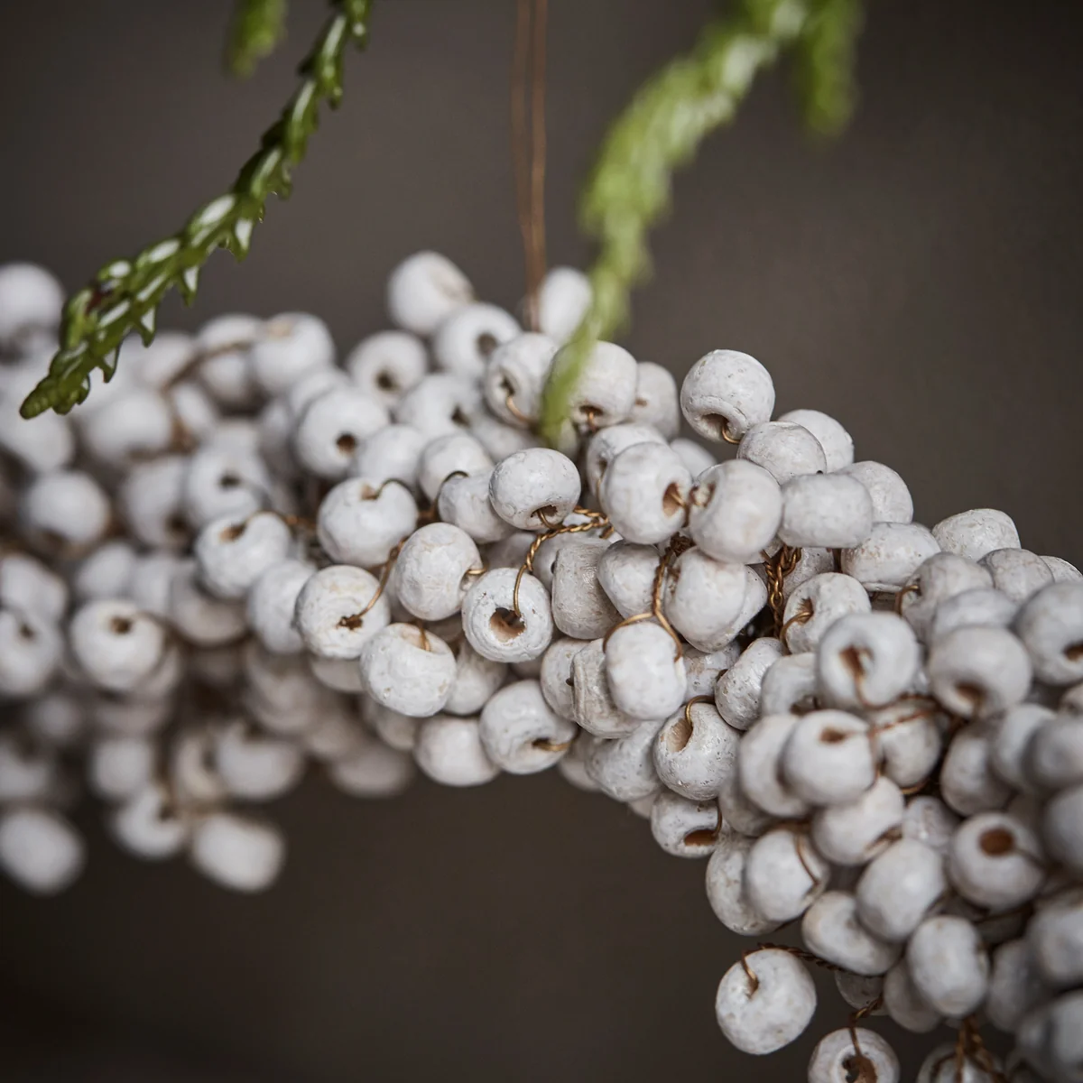 Fabriquée à partir de baies en bois de qualité supérieure qui scintillent dans une profusion de couleurs festives, cette couronne attire tous les regards. L'artisanat minutieux se reflète dans chaque détail, de la disposition parfaite des baies à la structure robuste de la couronne elle-même.