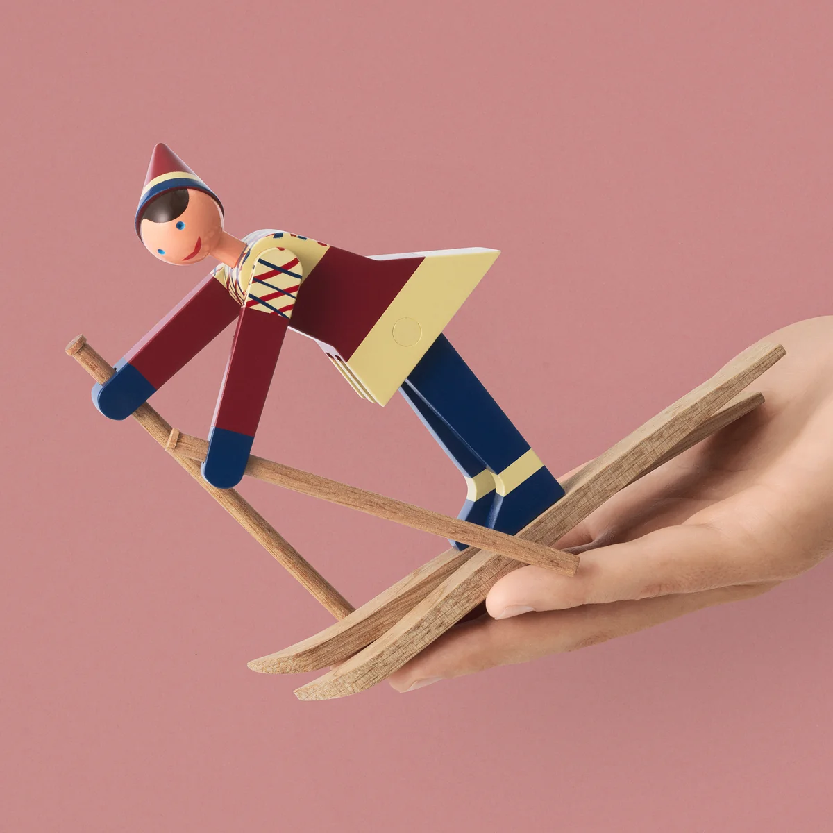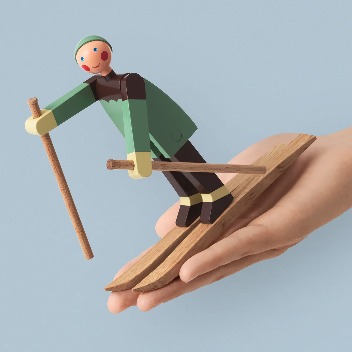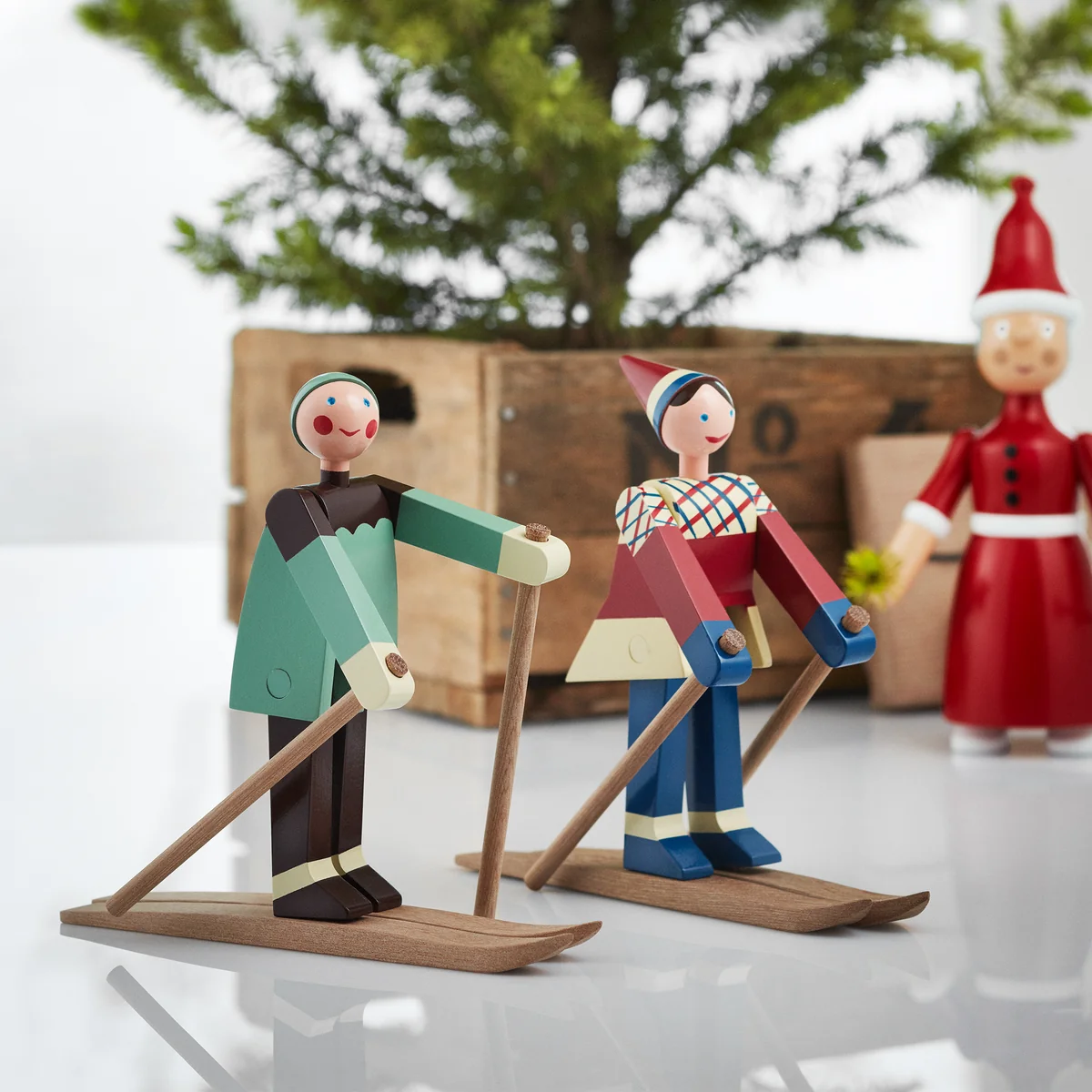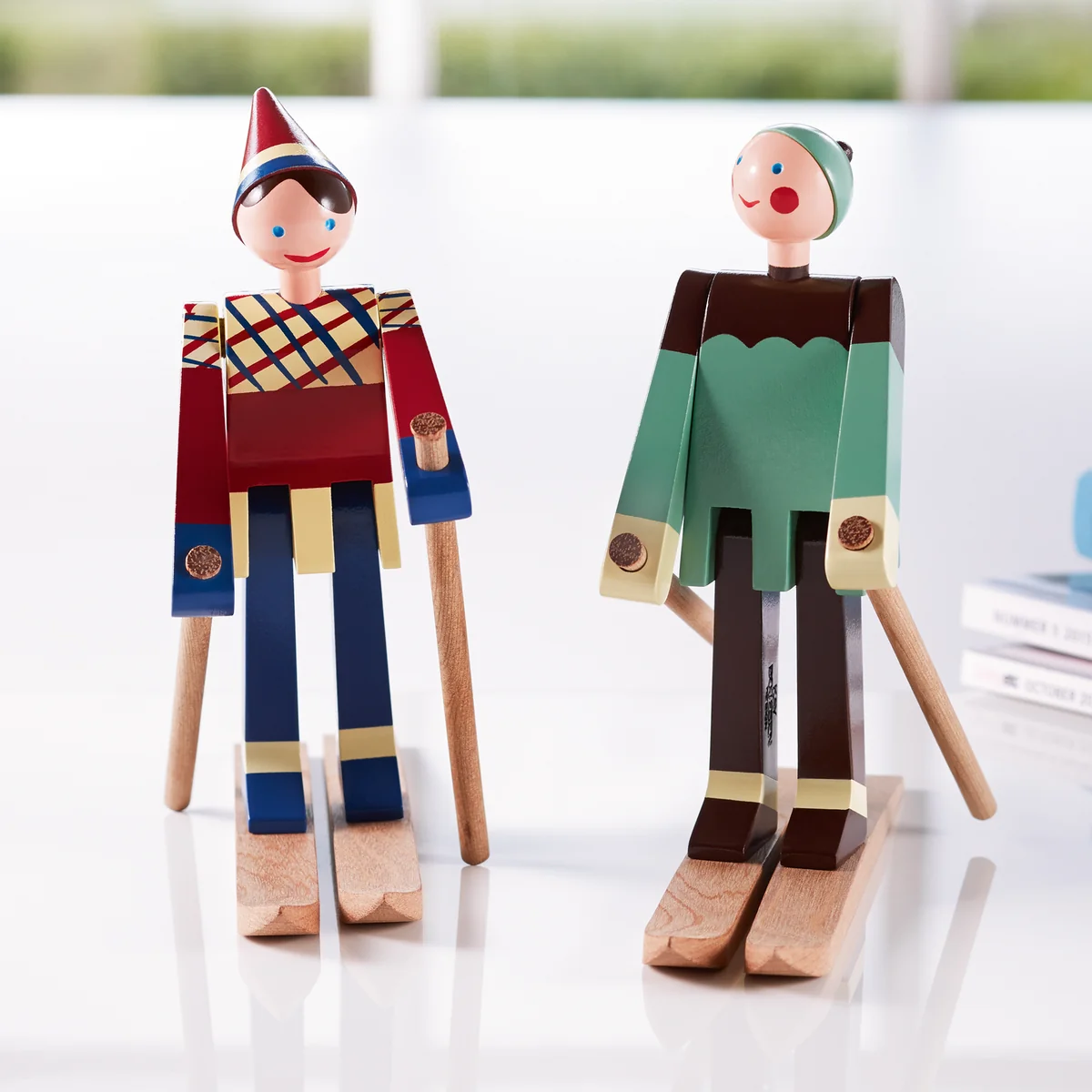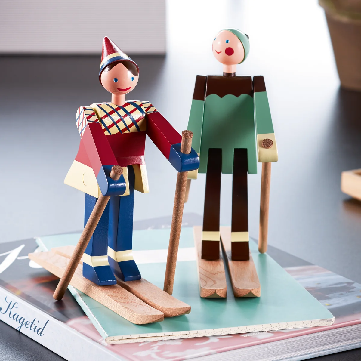 Les skieurs de Kay Bojesen sont une nouvelle édition du joli design du designer danois des années 1940 et vont bientôt s'inviter dans votre salon ! Celui avec la casquette rouge et la veste à carreaux s'appelle Boje, du nom du fils de Kay Bojesen , Otto, qui porte son surnom. Son collègue porte le surnom de la femme d'Otto, Ruth - Datti. Les deux skieurs effrontés n'étaient à l'origine produits qu'en petites séries, c'est pourquoi les figurines originales en bois sont aujourd'hui de véritables raretés. La nouvelle édition du skieur est en hêtre peint.