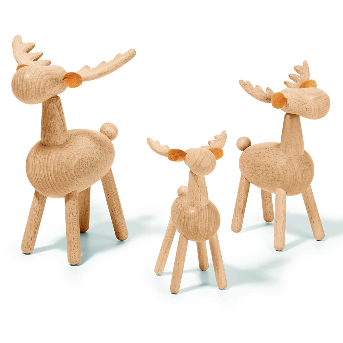 La figurine en bois Elmar de la maison allemande Philippi séduit par son aspect extrêmement naturel. Les veines du bois lui confèrent un aspect unique. Elmar est fabriqué en bois de hêtre non traité et est disponible en différentes tailles. Ainsi, la figurine en bois individuelle peut servir d'accroche-regard ou, groupée, orner la commode ou l'étagère comme une adorable famille d'élans.