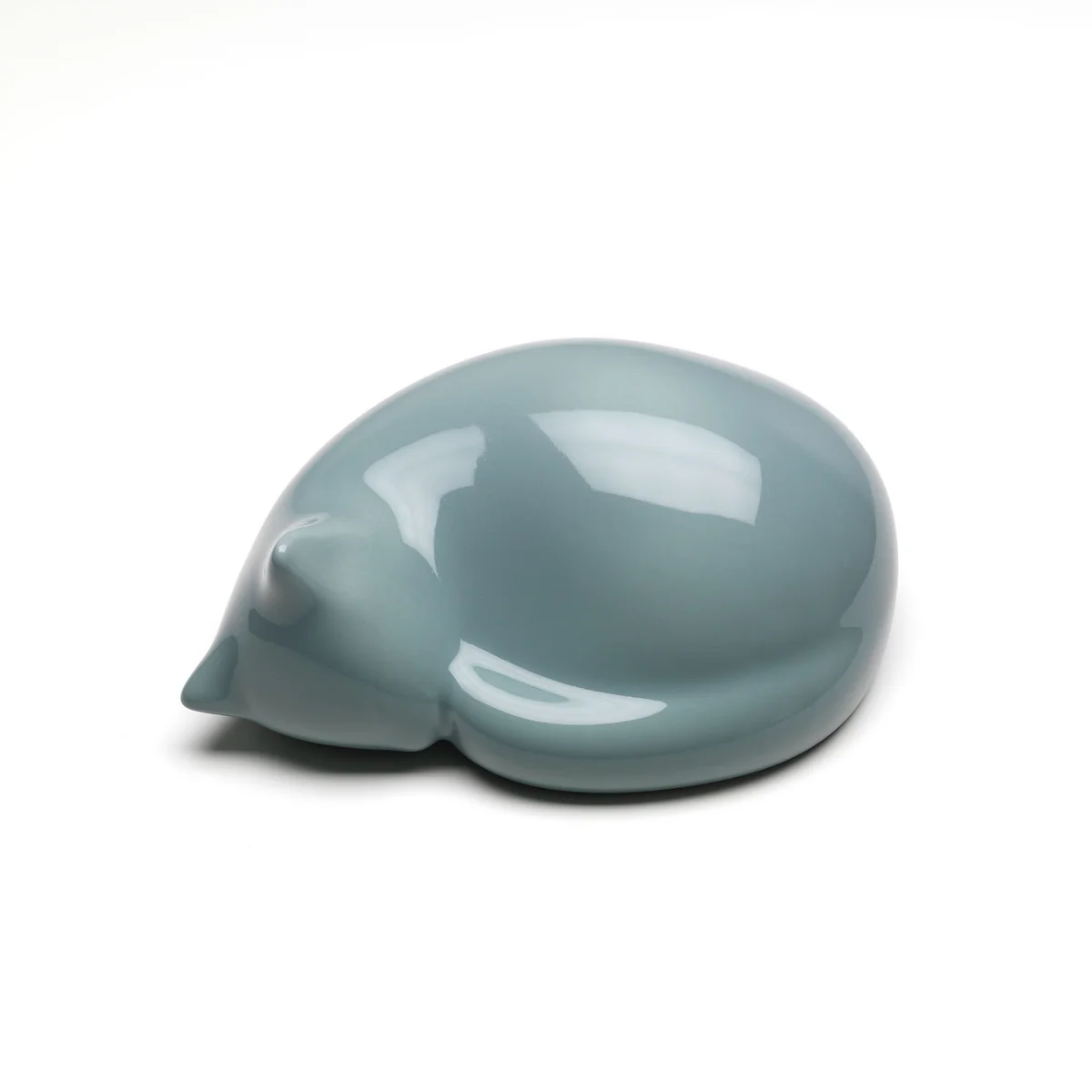 Le Resting Cat est fait de céramique avec une surface vitrifiée et est en position de repos roulée. Sa silhouette douce s'intègre parfaitement à toutes les ambiances et trouve sa place aussi bien sur le buffet que sur l'étagère ou le buffet. Leur charisme satisfait se répand dans toute l'ambiance et, espérons-le, se répand aussi à l'observateur.