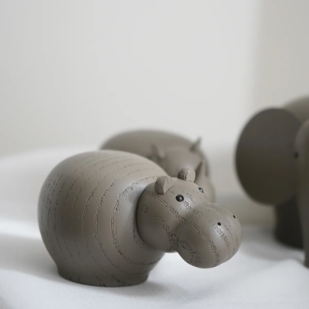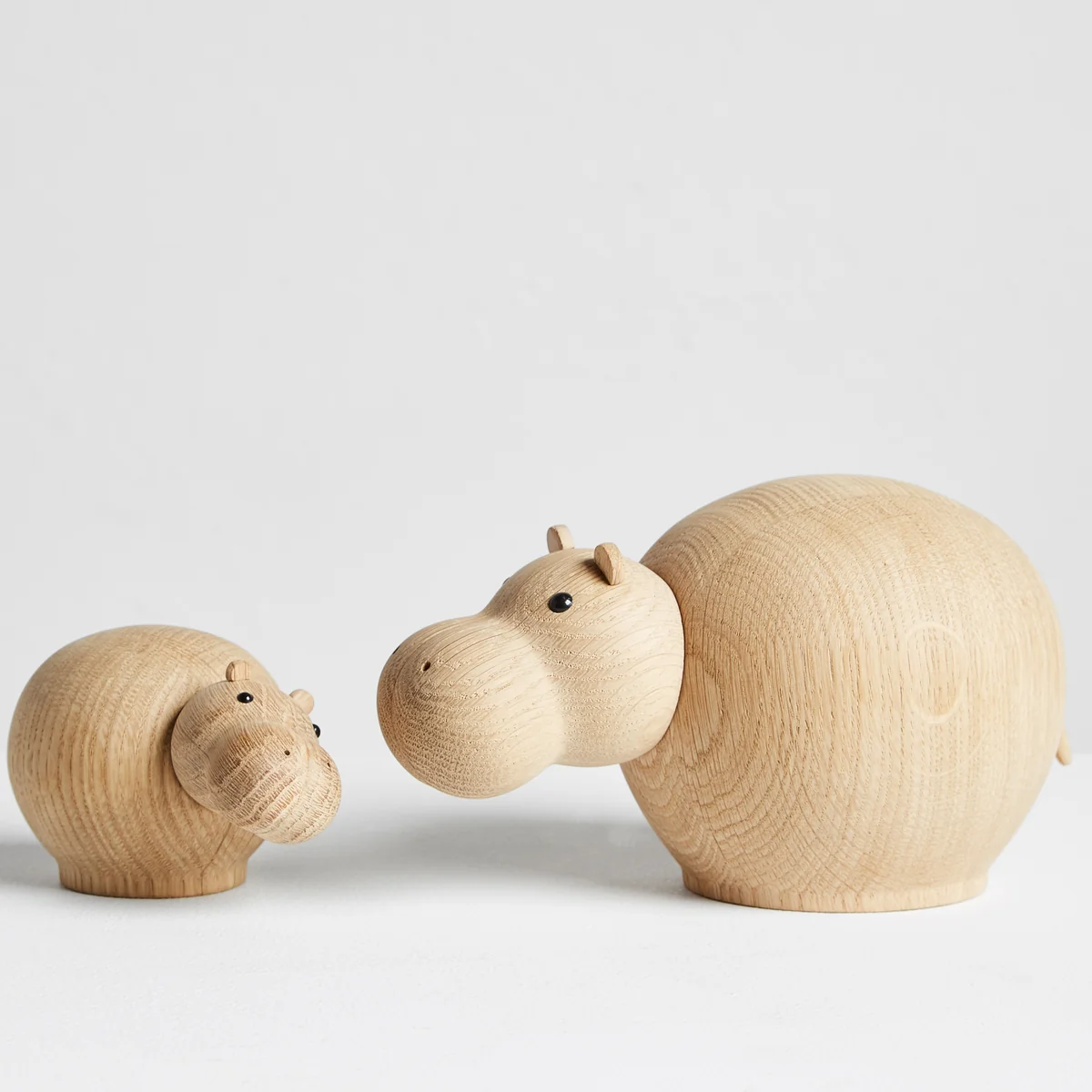 Hibo capture la nature des hippopotames dans une adorable sculpture Ă la silhouette douce, rĂ©alisĂ©e en chĂȘne massif. La figurine en bois est disponible dans une finition mate ou une couleur taupe, ainsi que dans une variĂ©tĂ© de tailles qui, ensemble, crĂ©ent une petite famille qui constituera un point focal ludique dans n'importe quelle piĂšce. Outre l'hippopotame, Steffen Juul a Ă©galement conçu Nana l'Ă©lĂ©phant et Rino le rhinocĂ©ros pour Woud . Qu'il s'agisse d'une figure isolĂ©e ou d'un grand troupeau, ils font le bonheur des enfants et des adultes.
