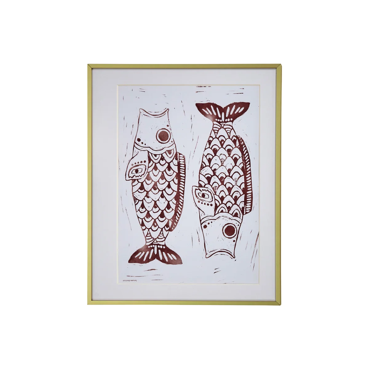 House Doctor - Tableau mural Fish, 50 x 40 cm, bordeaux