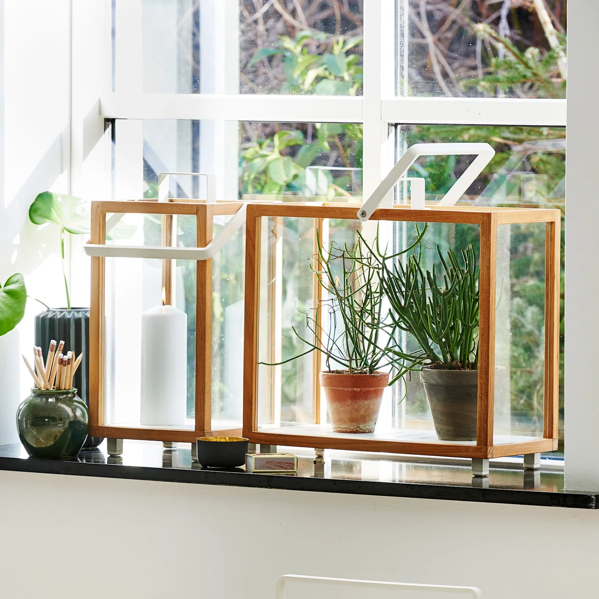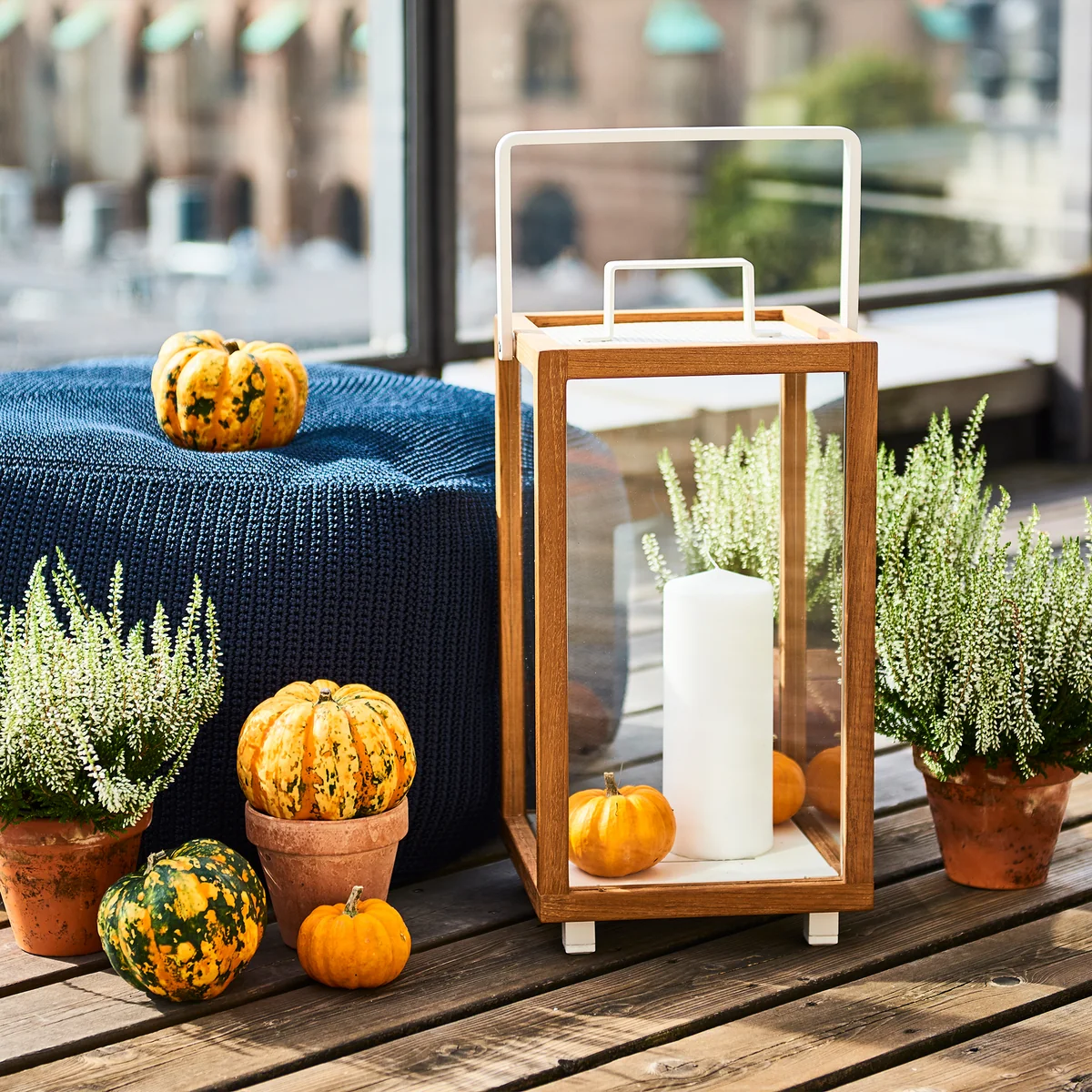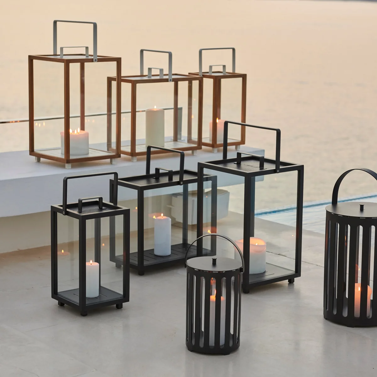 Le Lighthouse Lanternes de Cane-line sont des compagnons parfaits pour le jardin et la terrasse. Avec un mélange de teck, d'aluminium et de verre, les lanternes s'adaptent discrètement à tout environnement. La lumière des bougies crée également une atmosphère agréable et chaleureuse à l'extérieur. Grâce à la poignée pratique, la lanterne peut également être transportée facilement.