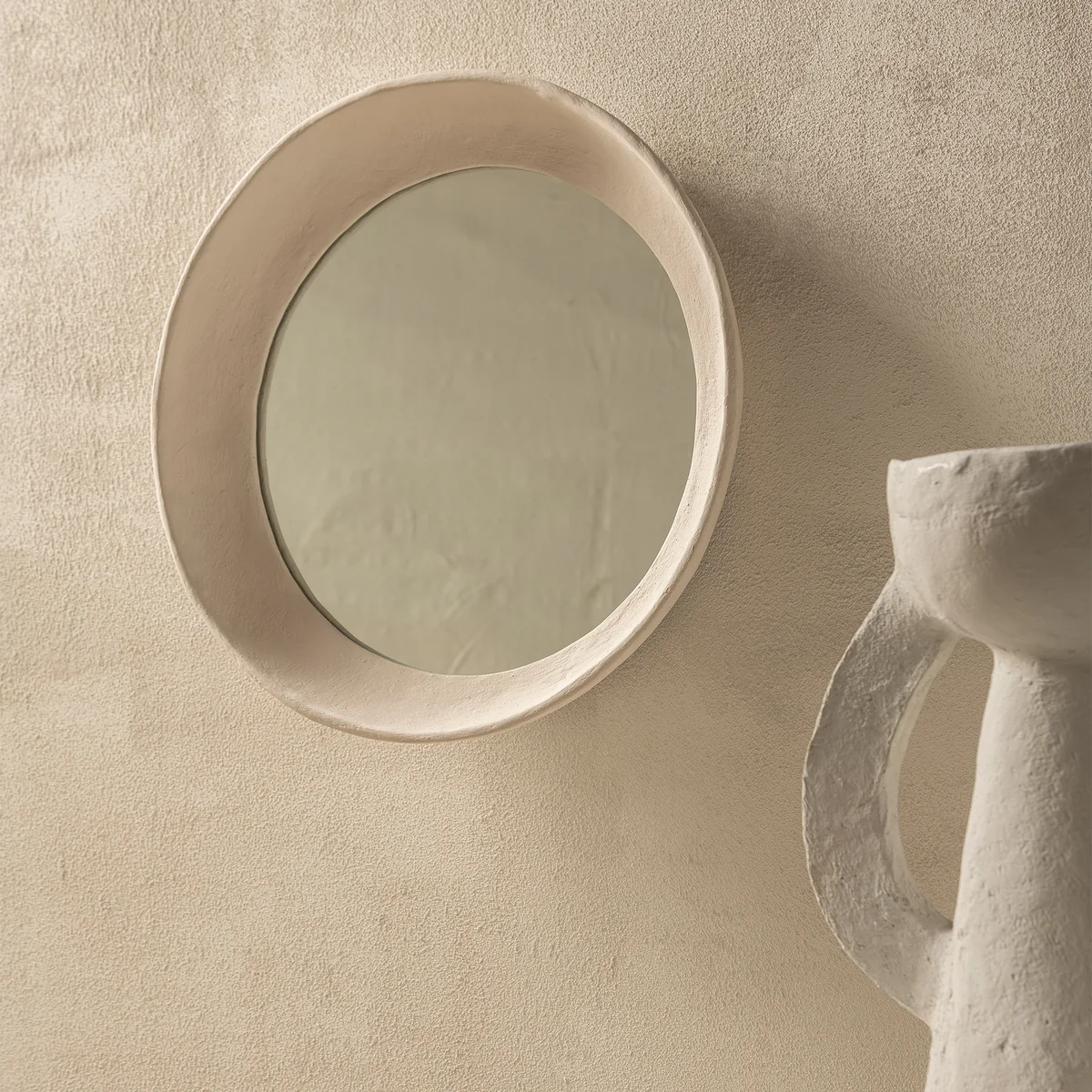 Le miroir Earth de Serax allie des lignes organiques à un rayonnement artisanal authentique. Le cadre de forme irrégulière est en papier mâché et reflète la signature du choix durable des matériaux et de la fabrication individuelle. Chaque miroir est ainsi une pièce unique dont la surface et la structure varient légèrement. Son ton blanc cassé naturel et sa forme douce et irrégulière font du miroir Earth un accent particulier dans les intérieurs modernes, minimalistes ou proches de la nature.