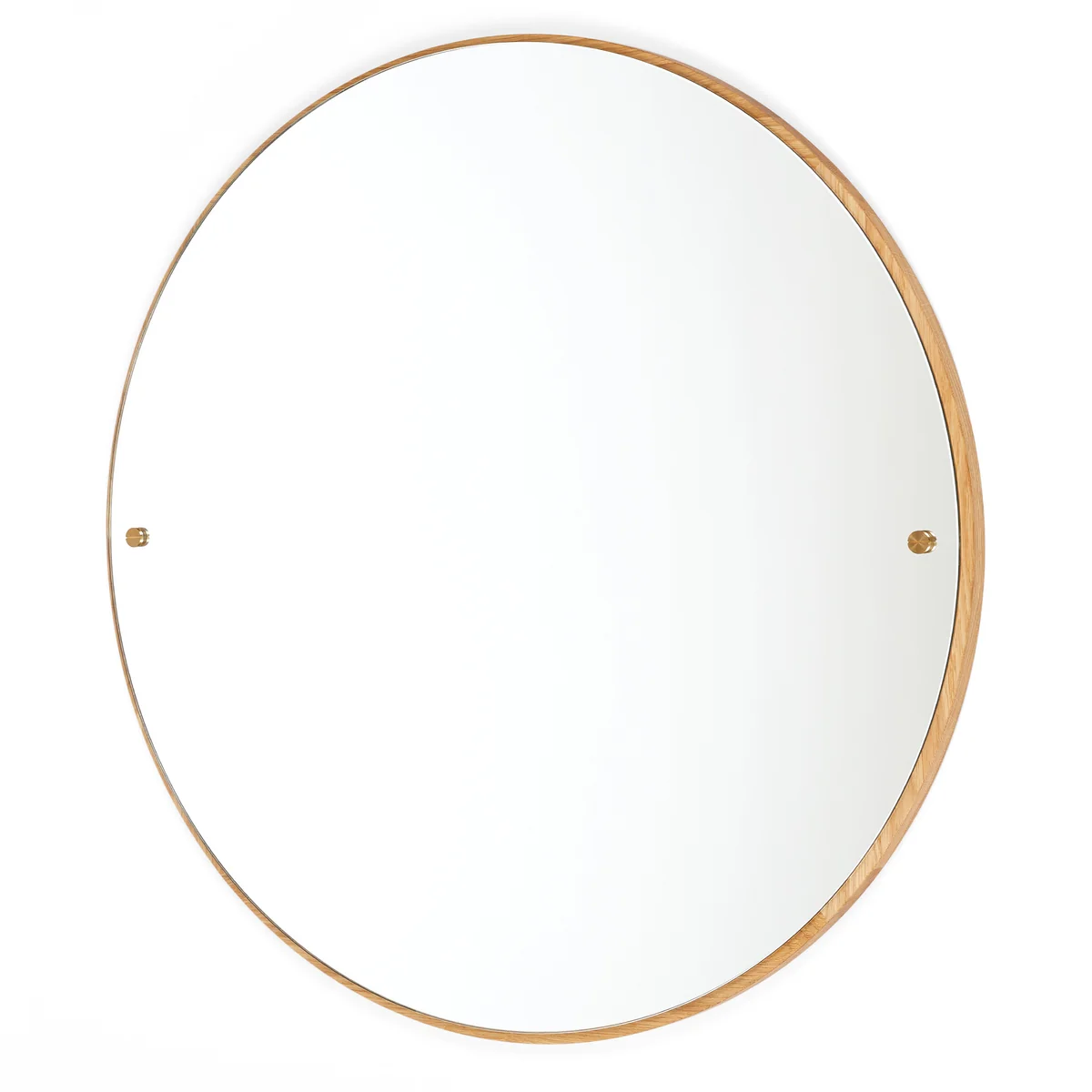 Le miroir CM-1 Circle Le miroir mural est fabriqué en verre, en bois de chêne et en laiton.