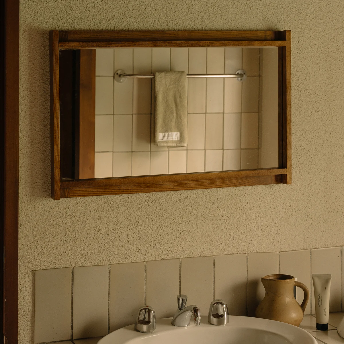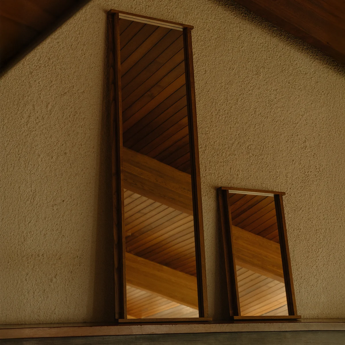 Le miroir Symmetry, conçu par le Studio 0405, transpose pour la première fois le langage formel caractéristique de la série Symmetry sur un objet miroir. Fabriqué en frêne teinté couleur miel, le design reprend la répétition rythmique des planches de bois et les associe à la surface réfléchissante pour former une image globale harmonieuse. L'encadrement fin et le profil réduit soulignent l'expression minimaliste. Qu'il soit accroché verticalement ou horizontalement, le miroir apporte une chaleur naturelle et une clarté architecturale à chaque pièce.